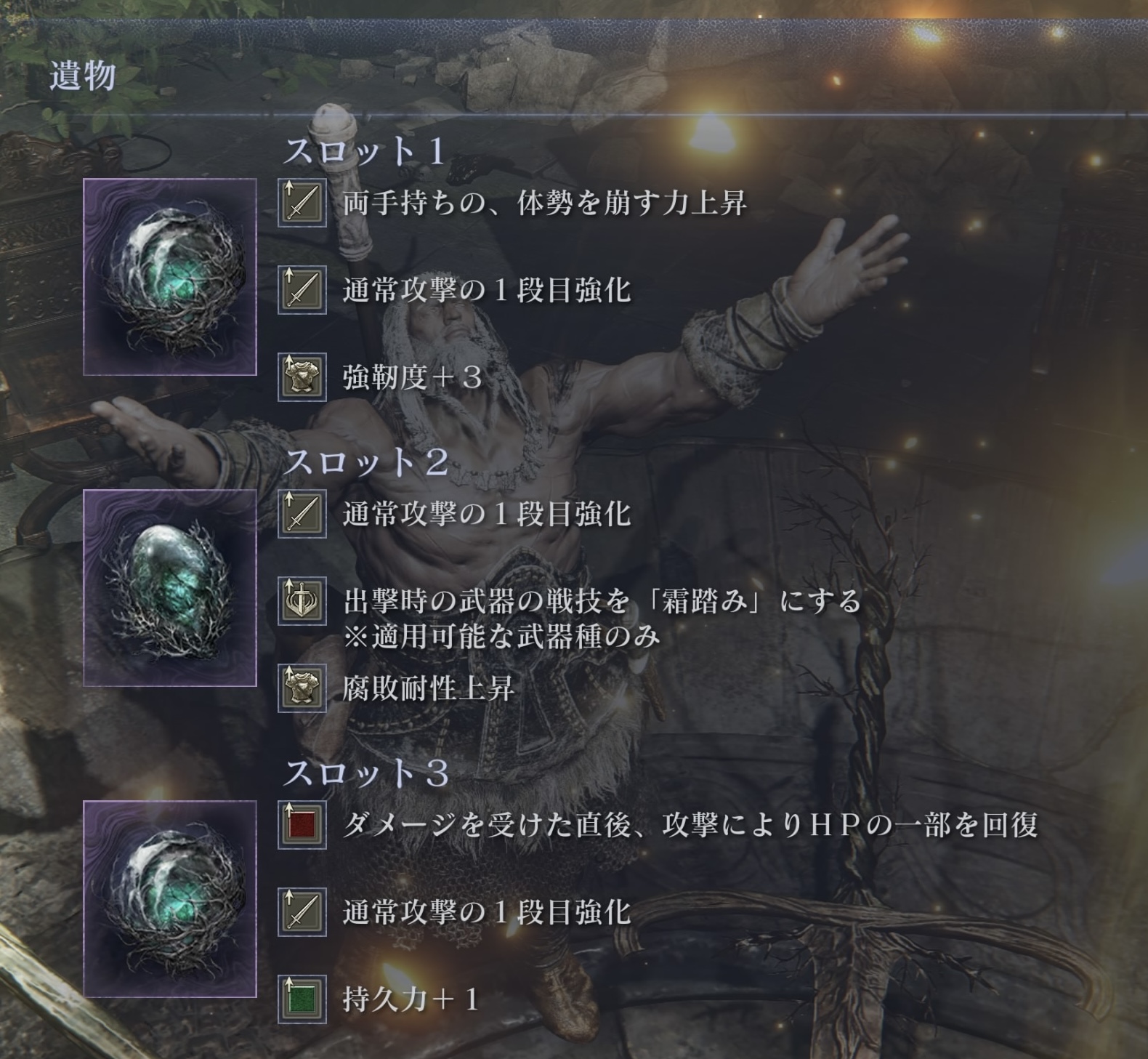 耳飾りと骨とブローチはマジで神遺物引けてても気がつくと遺物スロットに鎮座してることあって怖い