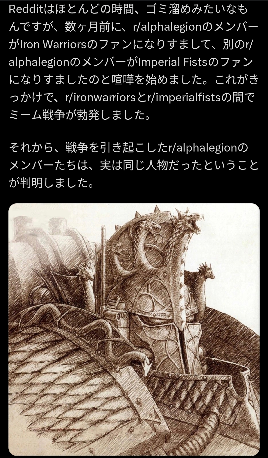 | … | 19326/01/23(金)14:24:53No.1395104702+>ウォーハンマーがめちゃくちゃ流行った遠未来 |