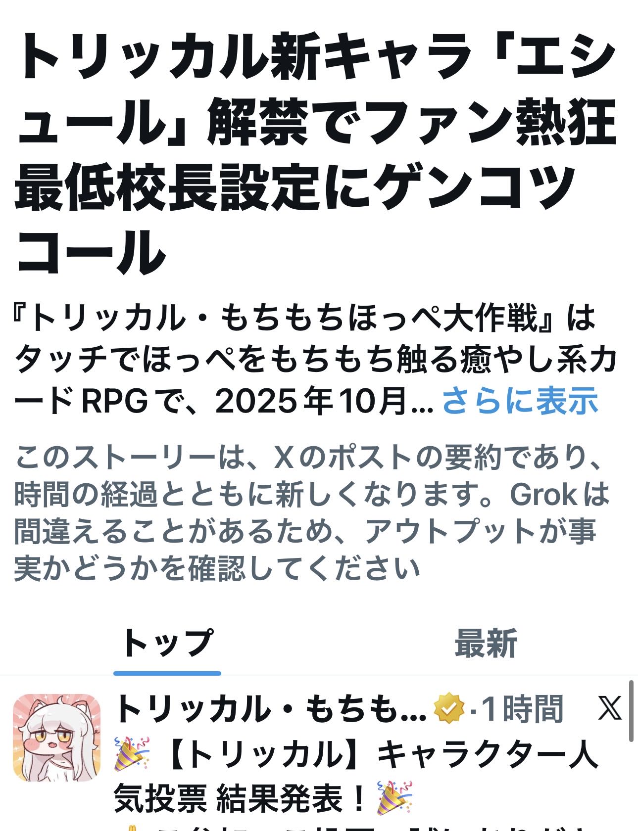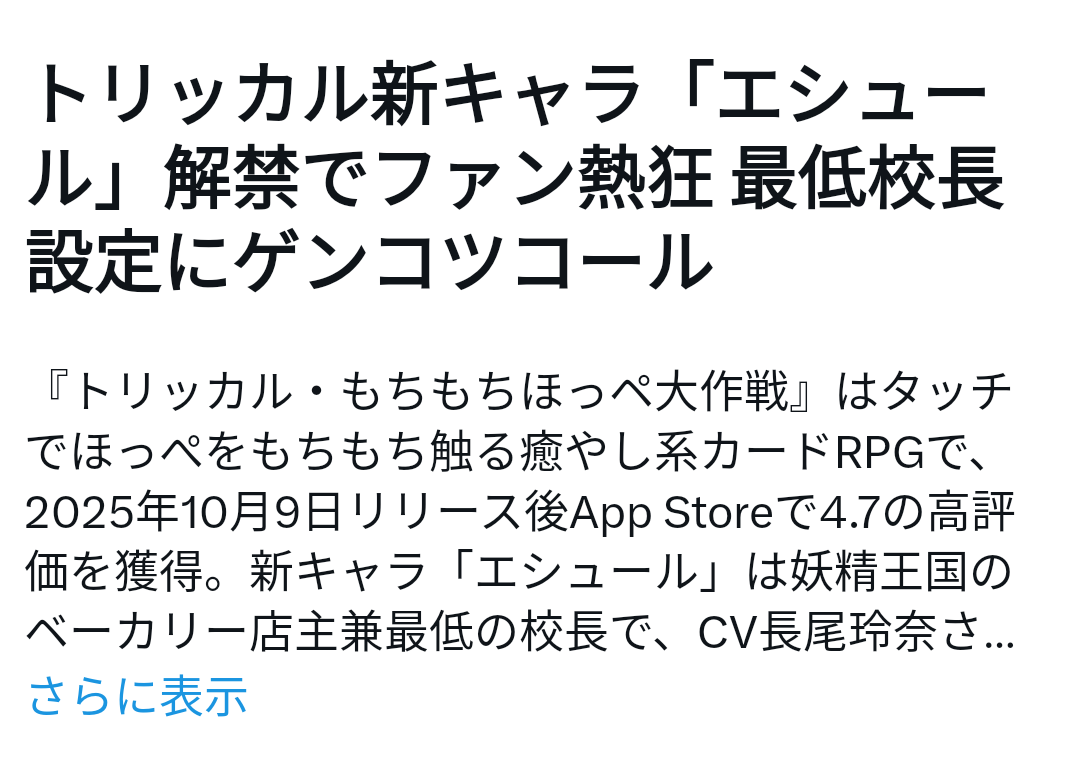 | … | 4126/01/23(金)16:21:41 ID:ukJou93.No.1395127203そうだねx6>トリッカルもキャラソンとか出すにゃん |