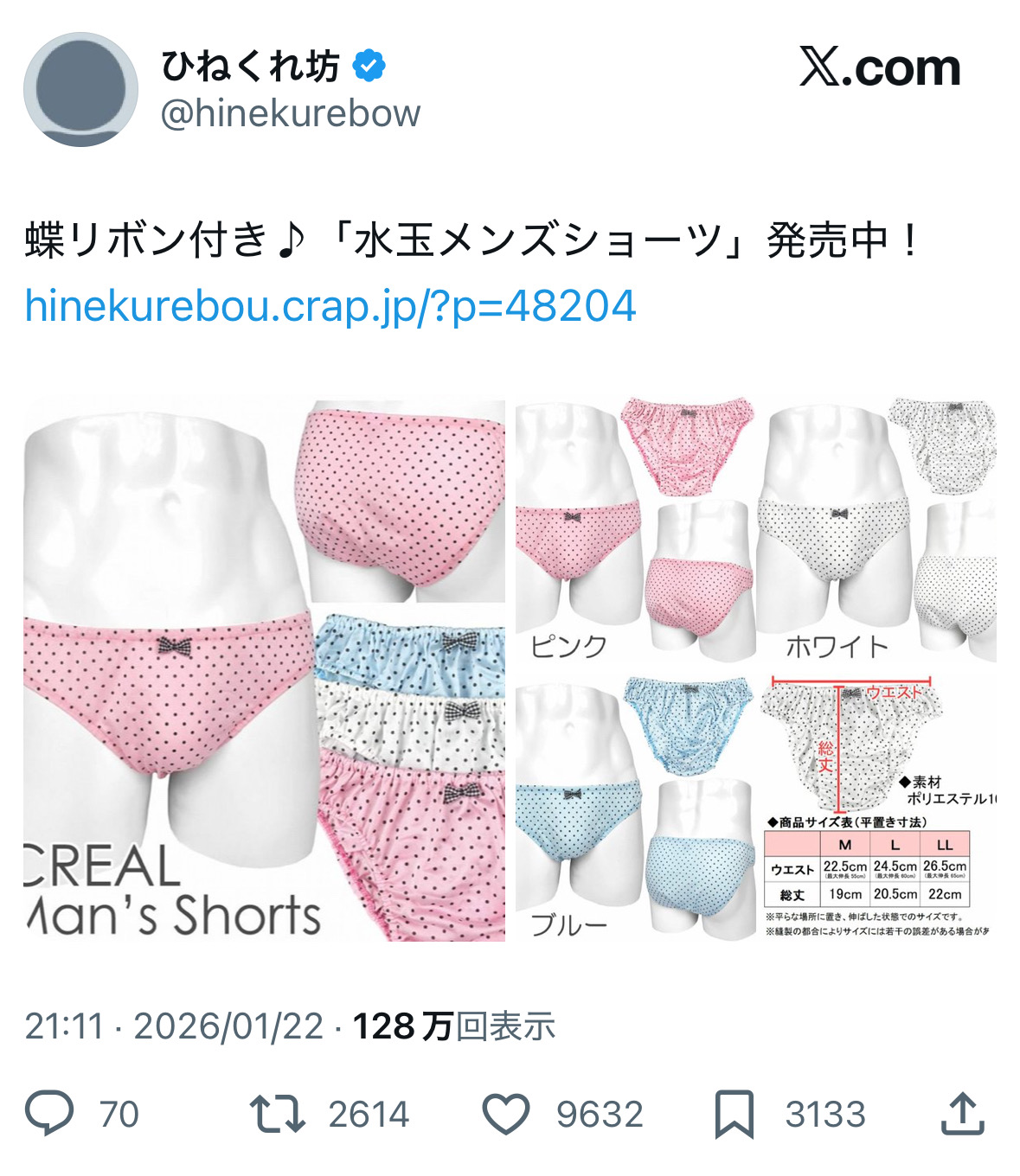 | … | 2626/01/23(金)18:14:49No.1395153771+水玉メンズショーツでググったら思ったよりいろいろでてくるな |