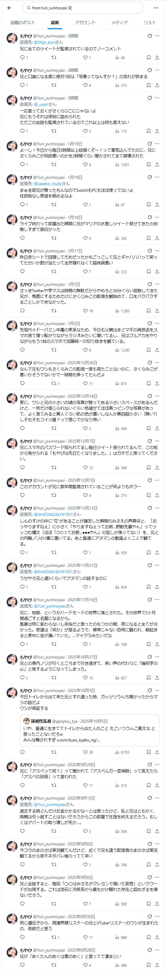 | … | 2026/01/23(金)19:25:51No.1395176452そうだねx10別ににじ大して粘着されてないでしょ |