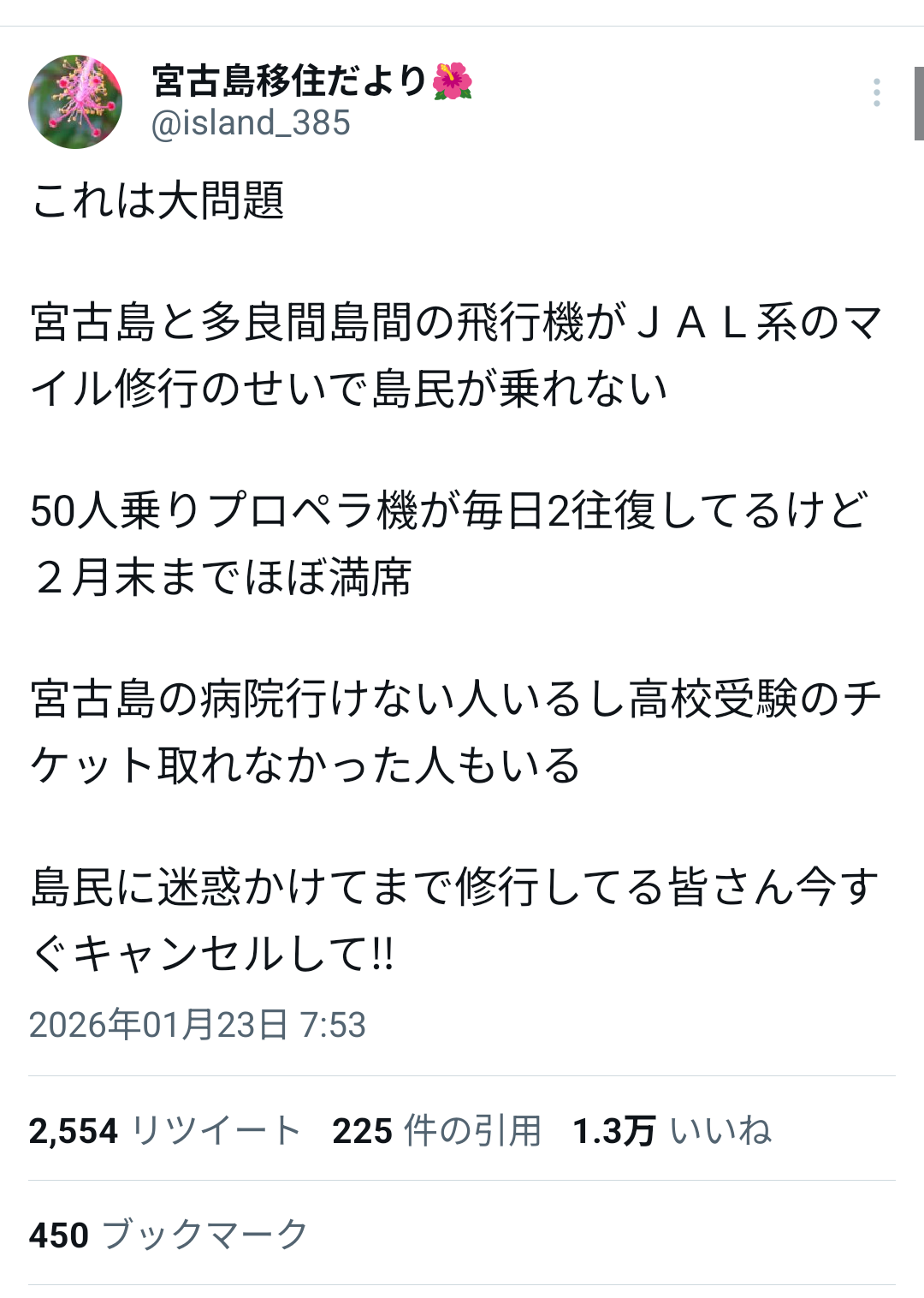 >どっかの地方空港で自治体から特に子供に対しては数百円で乗れる補助が出るからガキを数百回羽田往復させれば格安でステータス取れるとか見てダメだった