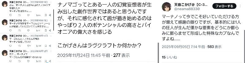 | … | 7226/01/23(金)21:57:35No.1395235176+天音こかげって人が作ったんじゃないの?マーナノって? |
