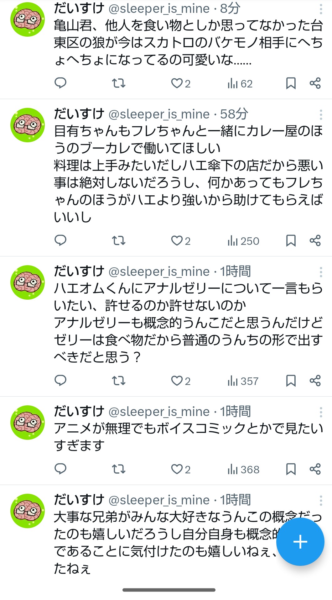 | … | 6126/01/24(土)08:28:50No.1395329559+ハエオムってうんこのことになるとここまでやばくなるんだ… |