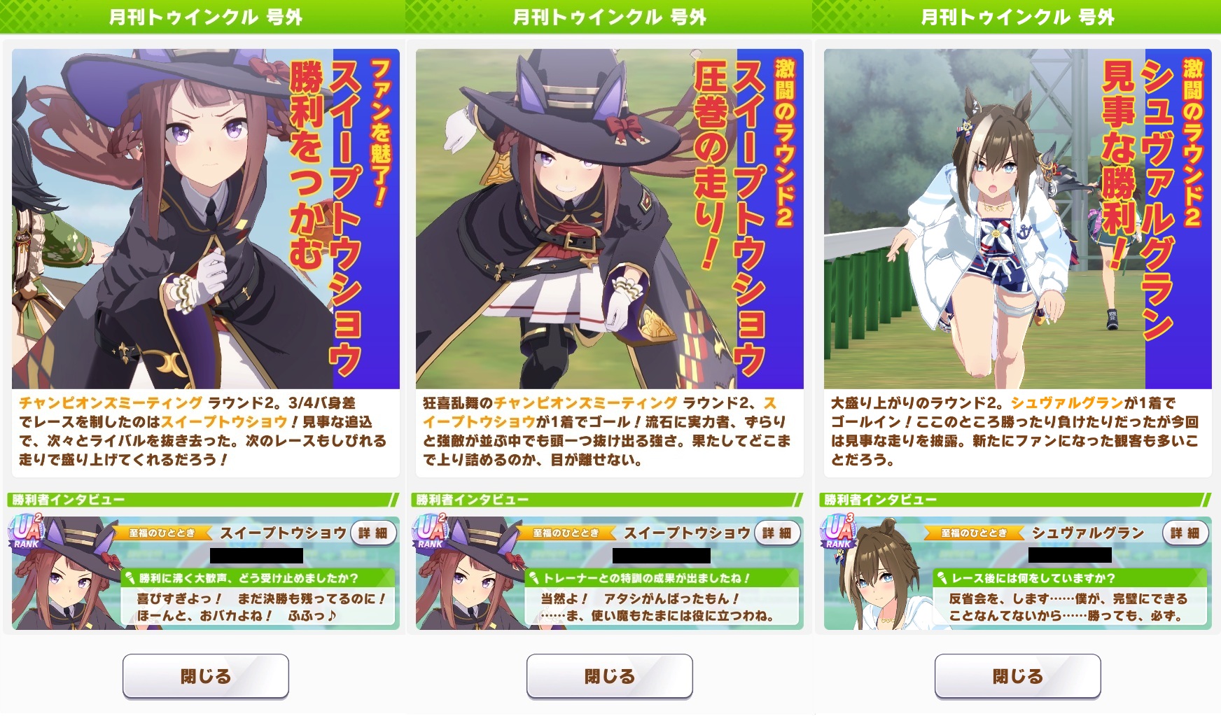 | … | 3826/01/24(土)12:25:04No.1395376312+負けてイライラするより好きなキャラ出して号外蒐集してる方がウマ娘楽しめてるんじゃないかって思えてきたのだ |