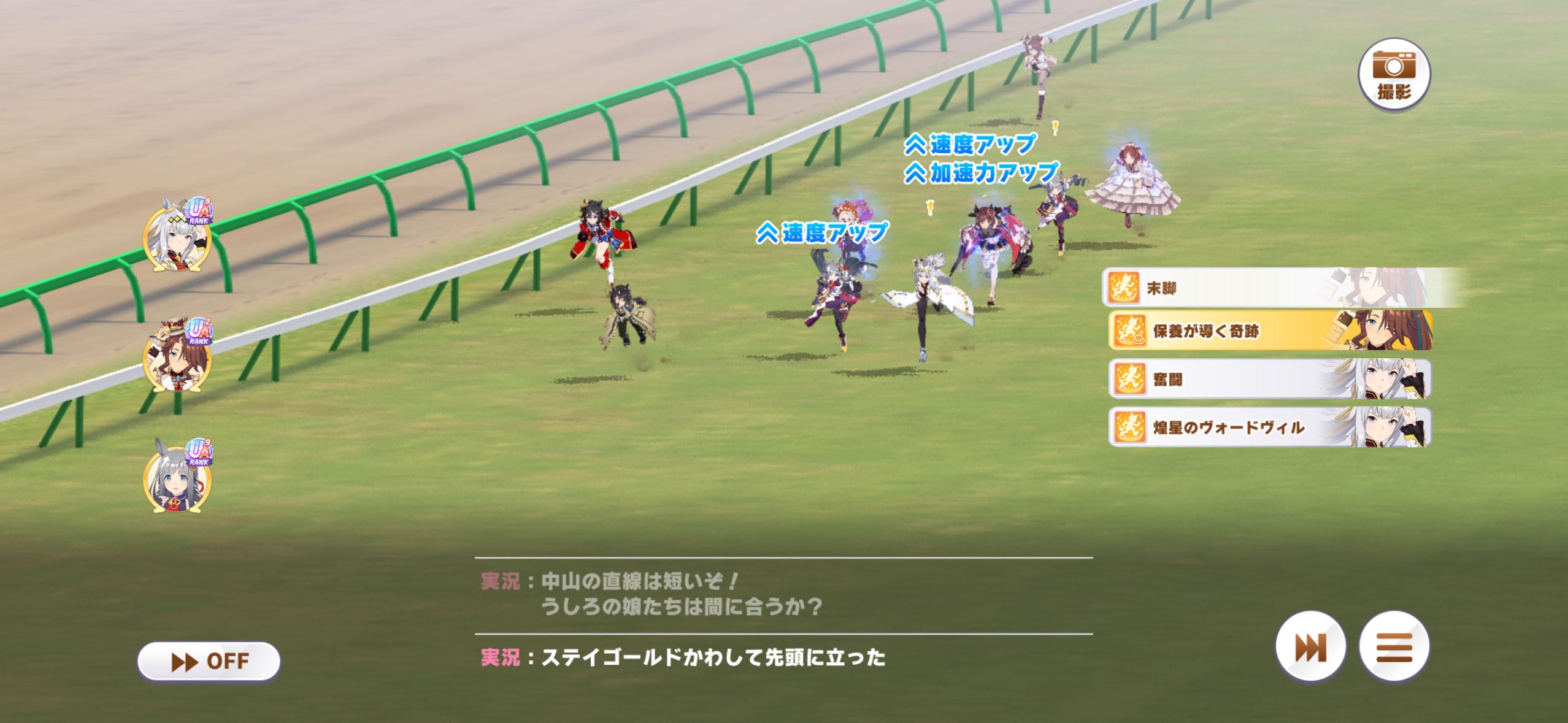 | … | 9126/01/24(土)12:41:49No.1395380540+序盤5〜6位くらいなら切れ者パワーで捲れるけど7位以下はさすがに順位条件でスキルが不発しまくって死ぬのだ… |