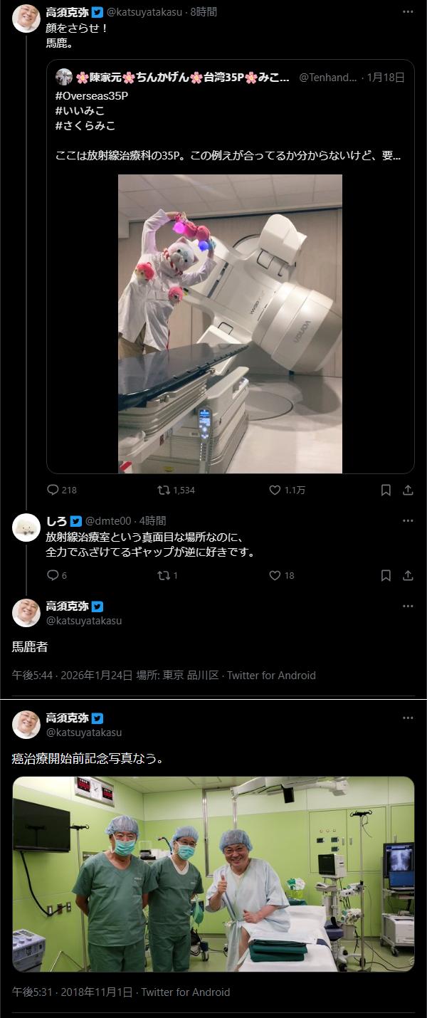 | … | 7026/01/24(土)22:02:16No.1395545681そうだねx12高須も他人を癌細胞扱いはするみたいだね |