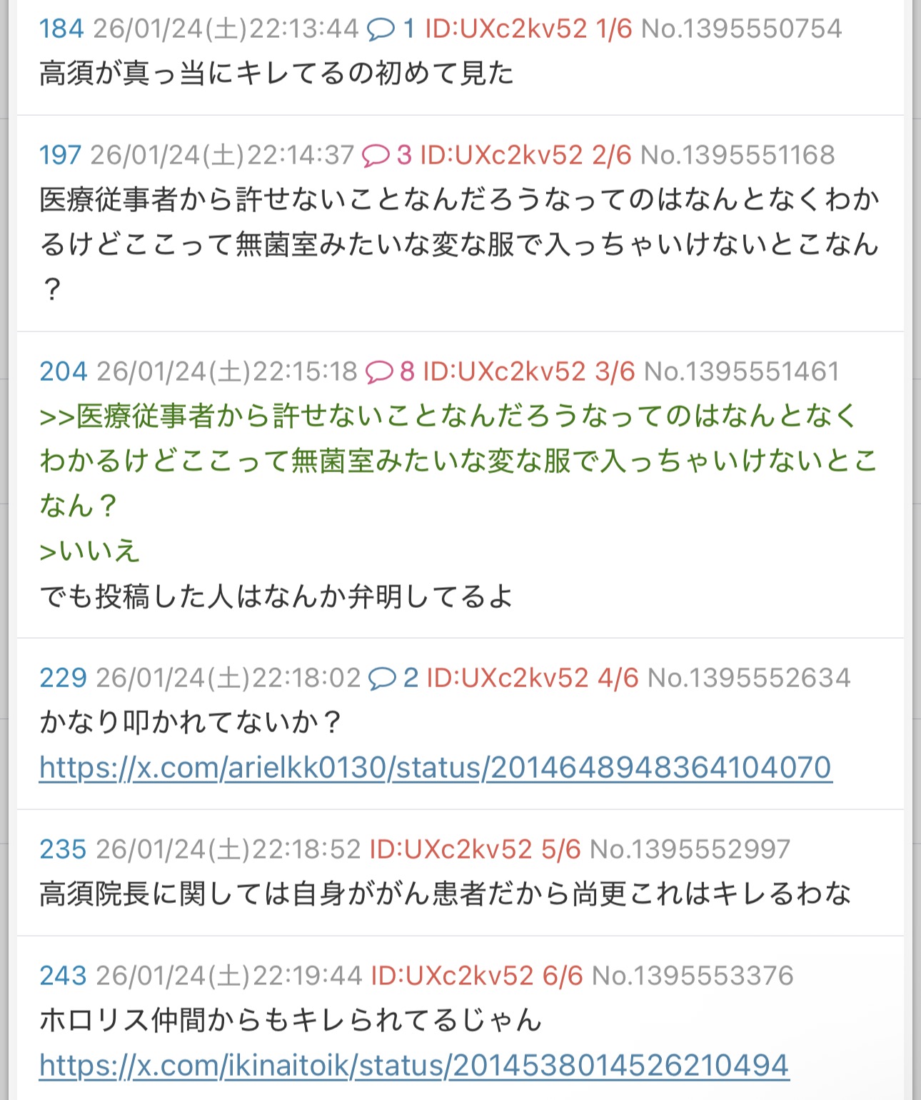 | … | 78026/01/24(土)22:52:25No.1395566915そうだねx3>>高須院長ブチギレやん |