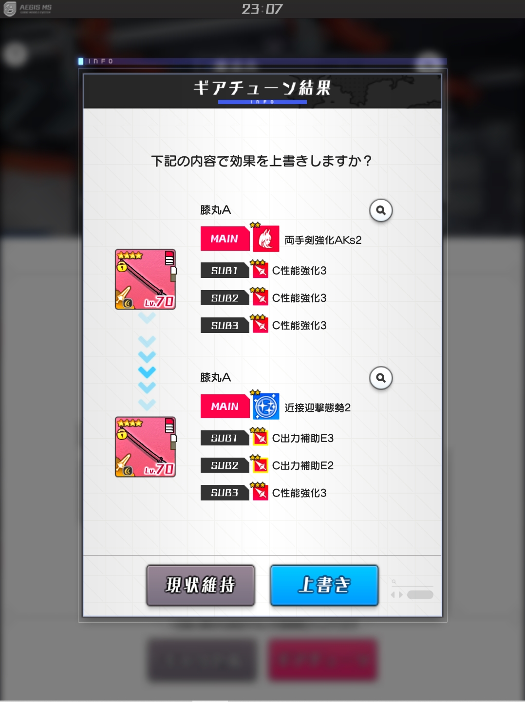 | … | 326/01/24(土)22:51:52No.1395566697+ゲ毛っすけどギアチューンでヴァイス素材を投入する青いゲージがあるっすけど |