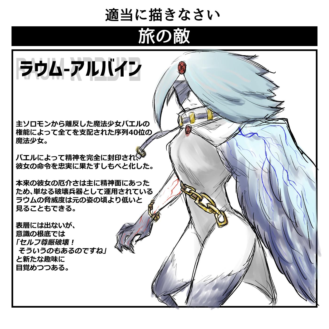 | … | 13126/01/24(土)23:46:20No.1395587223そうだねx7ラウミアは自称ネームなのでバエルや一部の魔法少女からは一向にラウムと呼ばれているということにした fu6209284.jpg |
