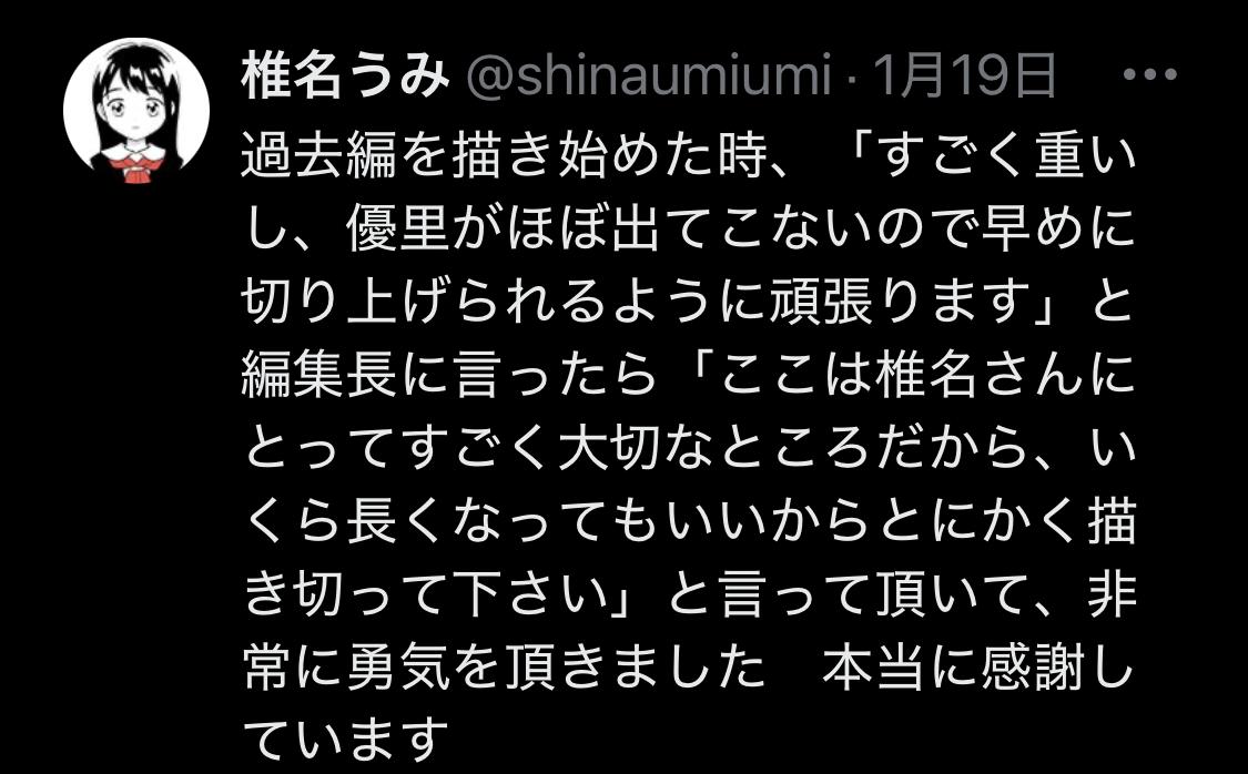 | … | 40726/01/25(日)08:21:37No.1395651372+>青野くんには生きて優里ちゃんとトラウマ乗り越えて幸せになって欲しかった〜〜〜〜〜〜〜!!!! |