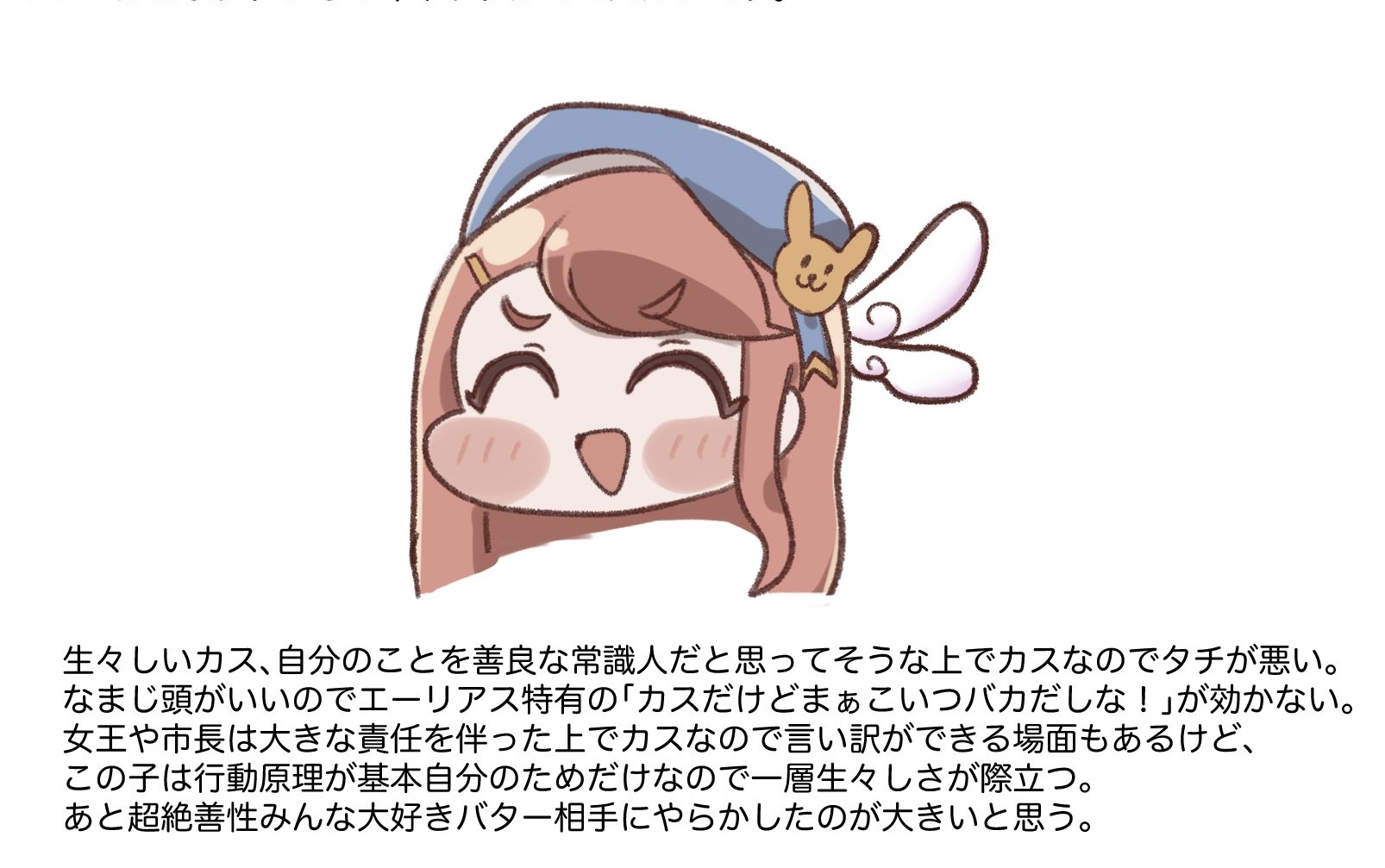 | … | 8826/01/25(日)08:19:27 ID:s1eAm43ANo.1395651113+>不本意パン屋キャラにしたから食品作ることに対してのこだわりで推すにはなんか変になるというメシマズキャラが一生まともに食事作れないみたいな呪いになってると思うにゃん |