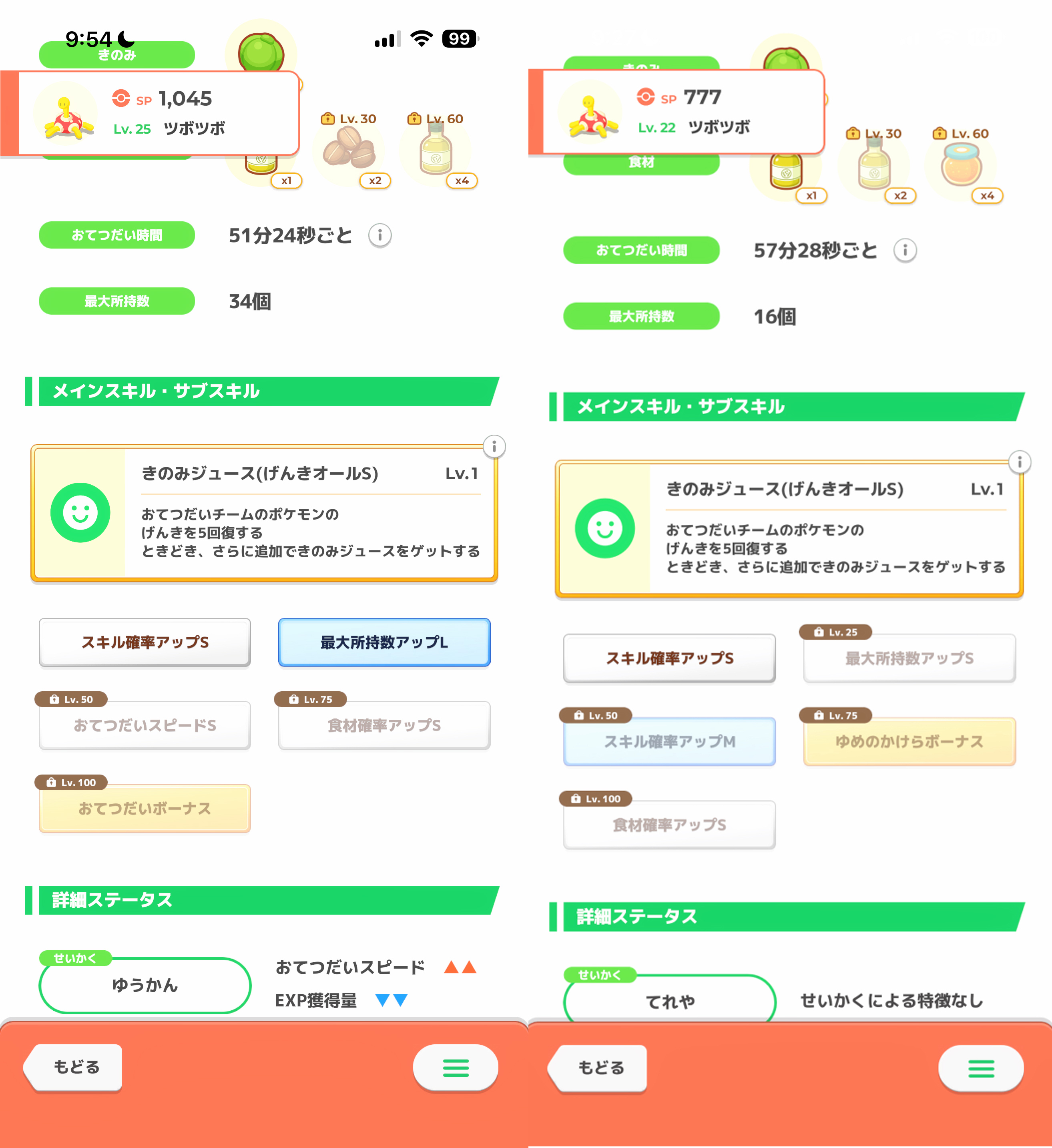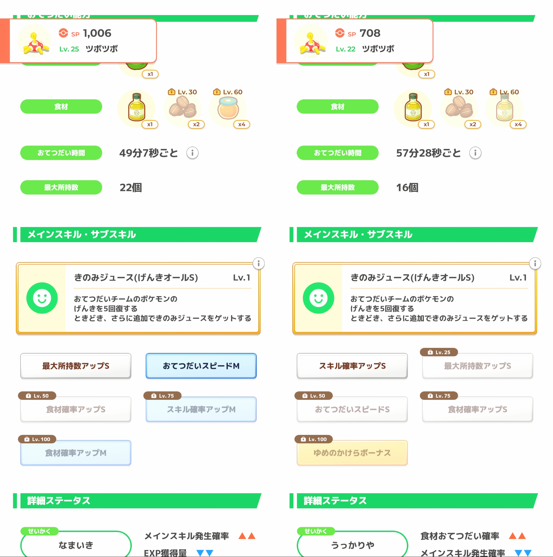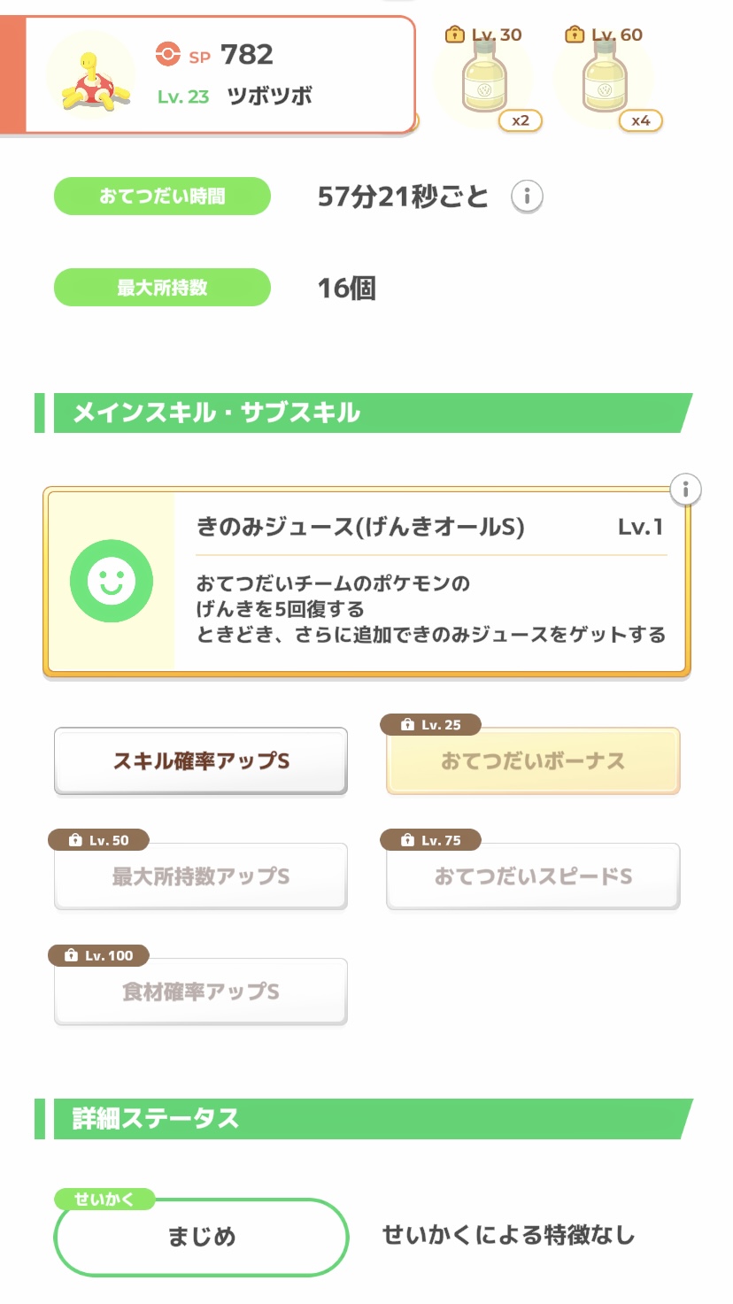 | … | 7726/01/25(日)12:44:43No.1395715782+スキルレベルがジュース率に関係しないなら妥協ツボツボのサブスキはもうどうでも良いゴン …関係しないよね? |