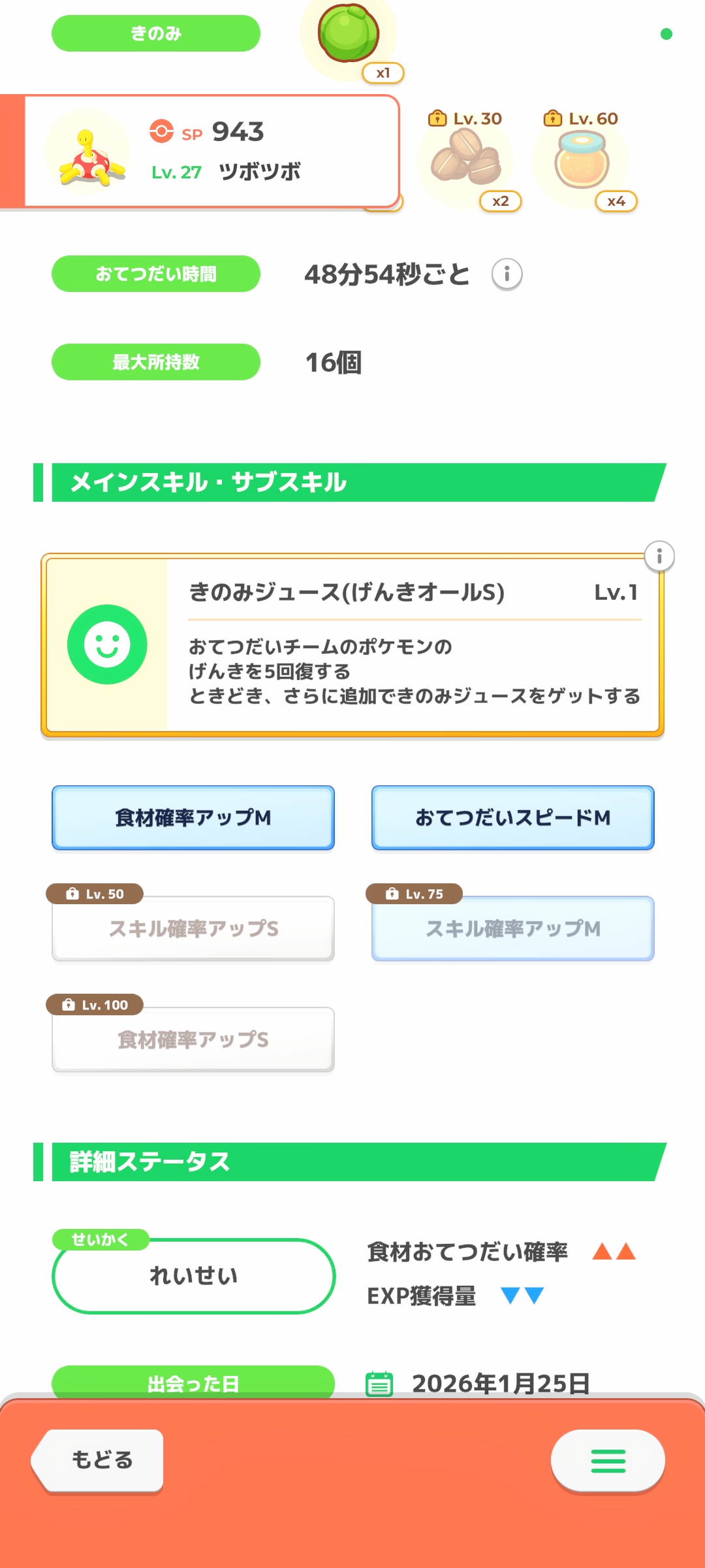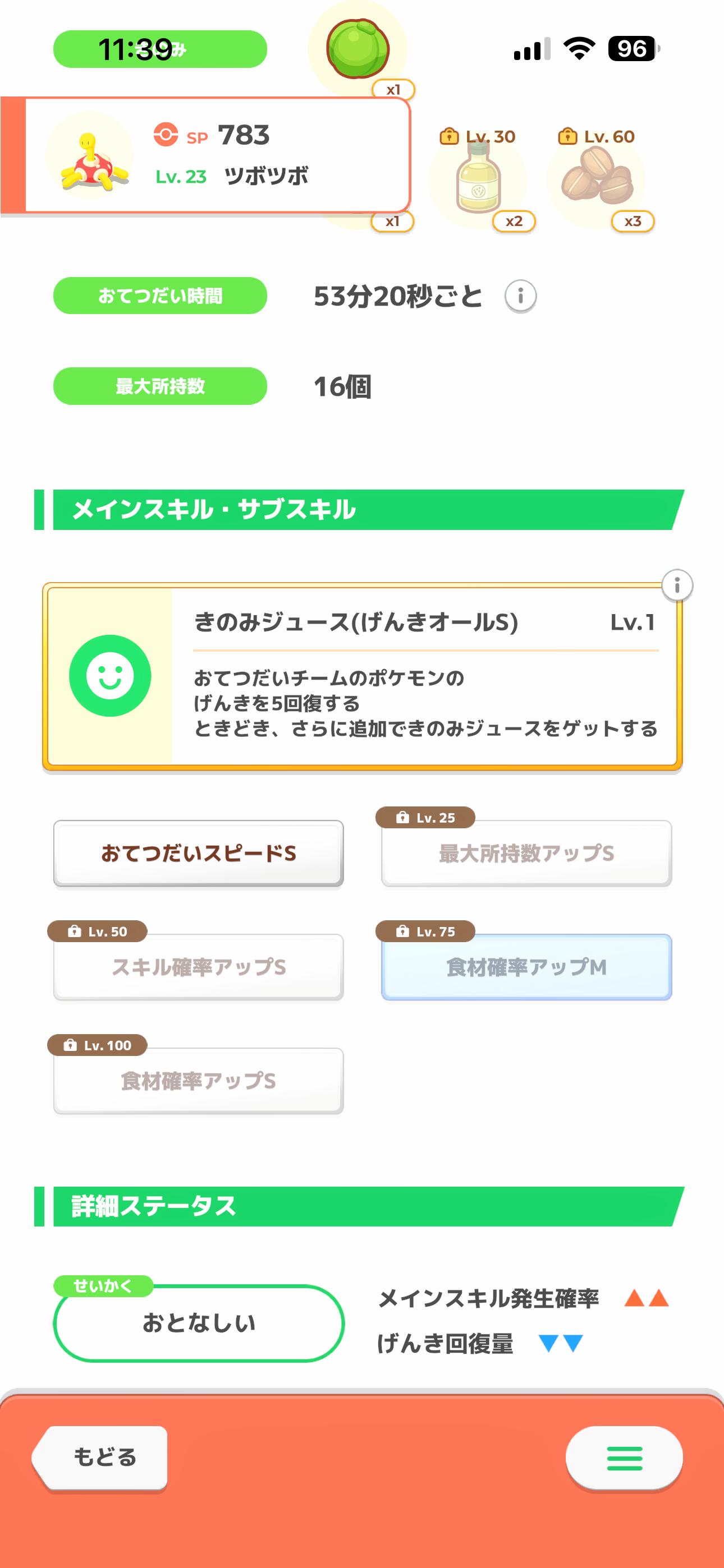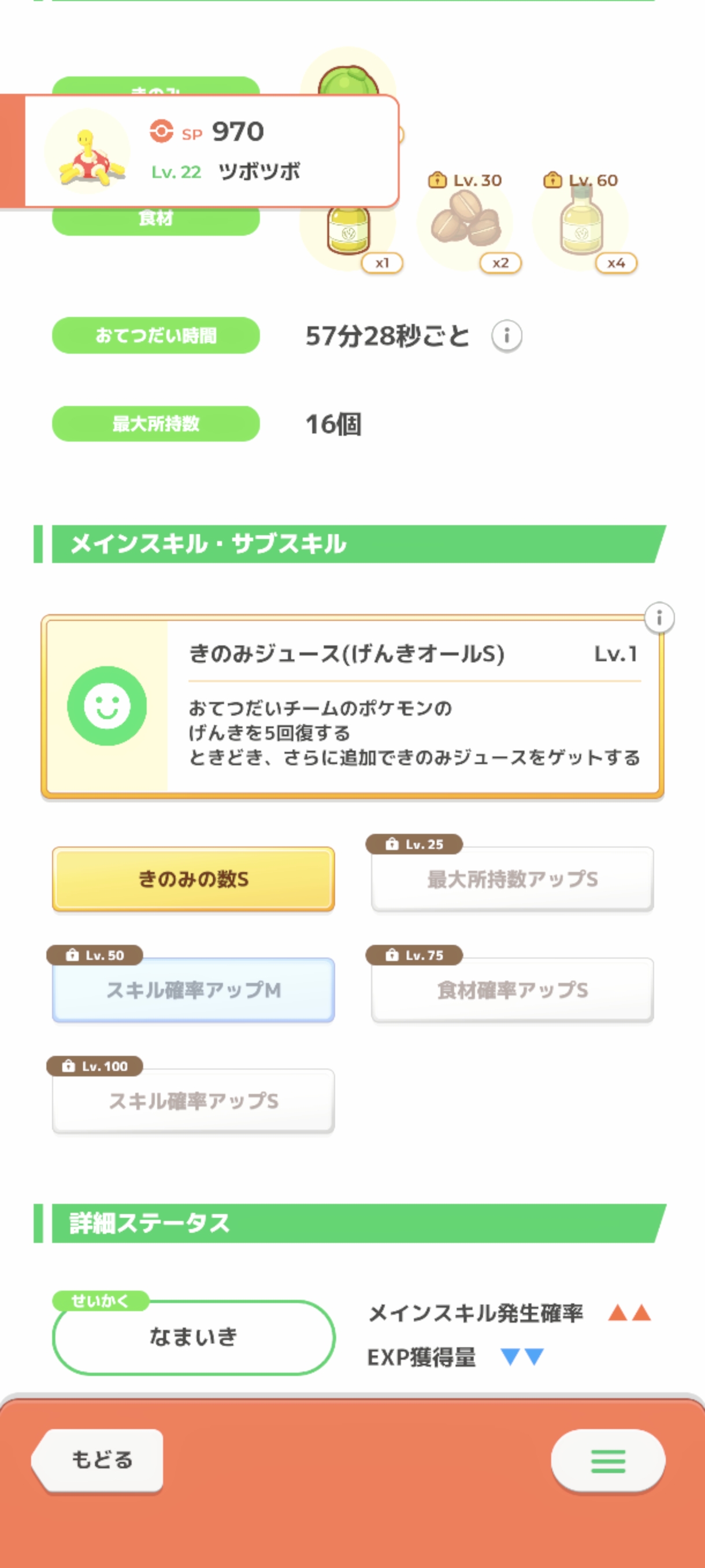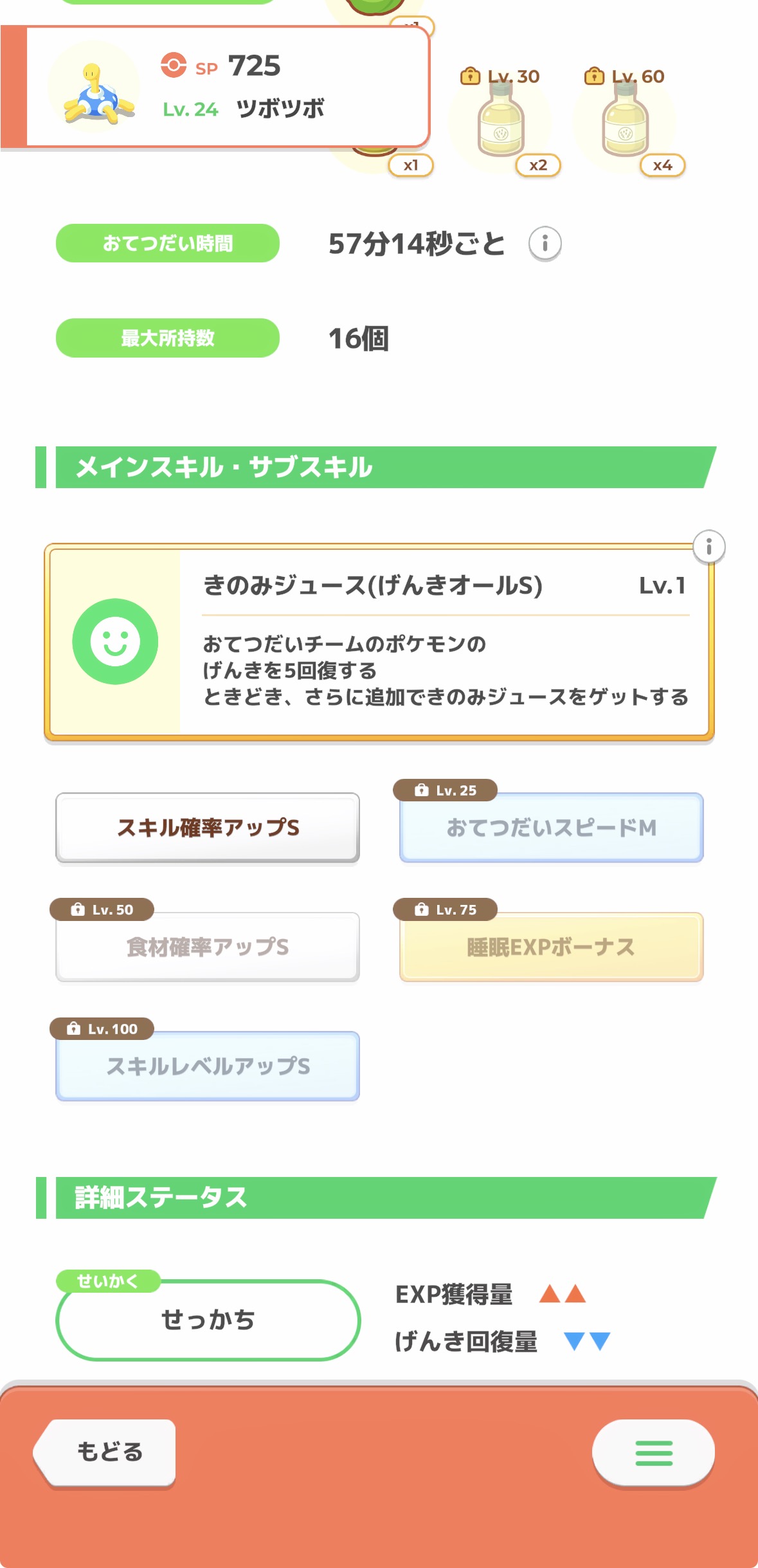 | … | 7726/01/25(日)12:44:43No.1395715782+スキルレベルがジュース率に関係しないなら妥協ツボツボのサブスキはもうどうでも良いゴン …関係しないよね? |