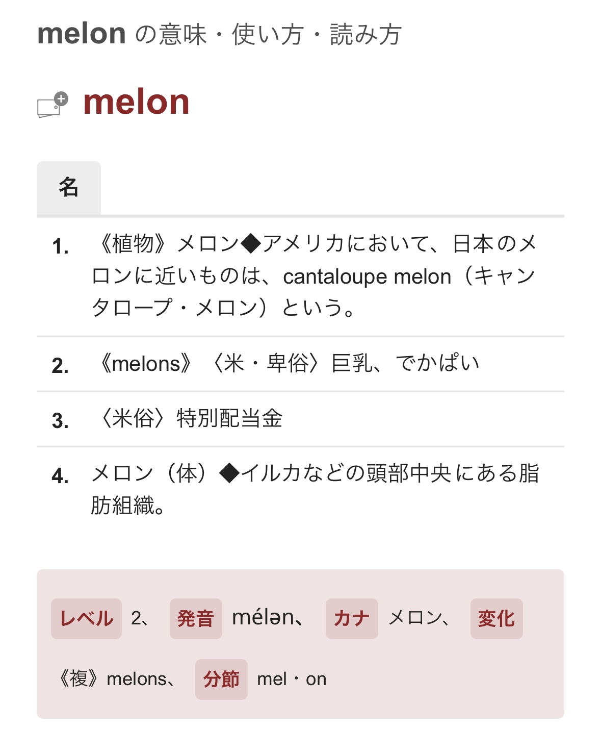| … | 5126/01/25(日)16:26:31No.1395771930+これ本当かな……この文脈でmelonを不可算名詞扱いしていいのか……? |