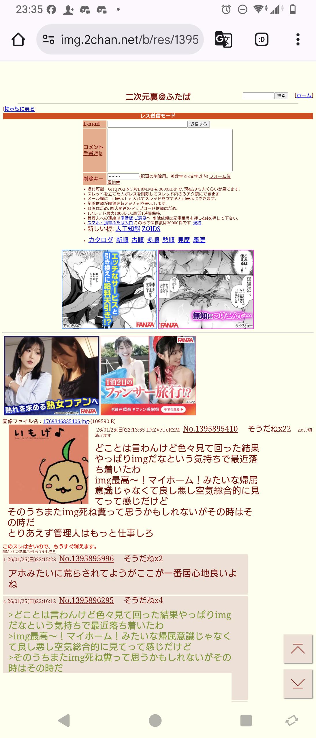 どことは言わんけど色々見て回った結果やっぱりimgだなという気持ちで最近落ち着いたわこのスレは古いので、もうすぐ消えます。