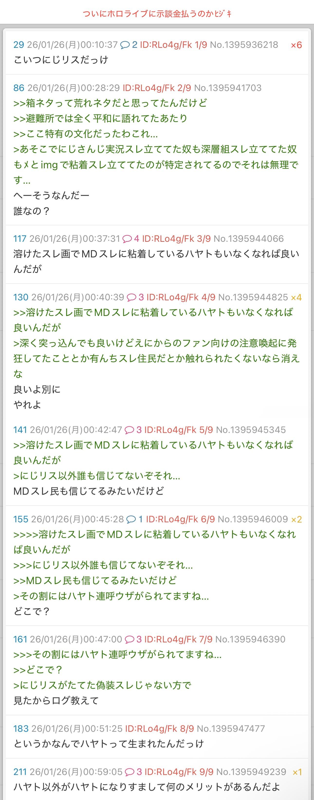 | … | 8526/01/26(月)00:28:24No.1395941672そうだねx4>上でも貼られてるけどにじさんじに粘着して法的措置取られてるよ |