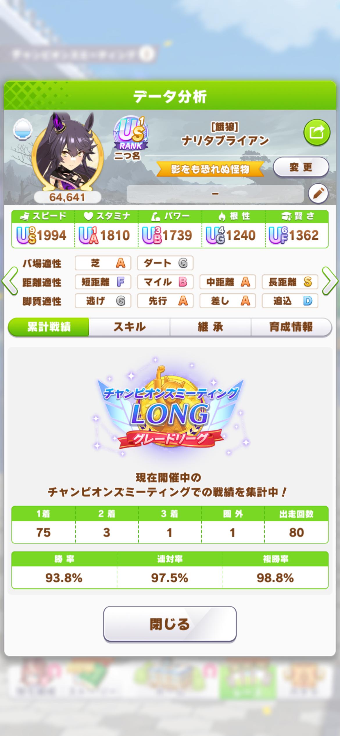 | … | 13626/01/26(月)01:24:43No.1395954320+距離先行Sでステも盛れたし真髄や継承固有もそこそこだけど殿下だけ完走しなかったオグリができたのだ |