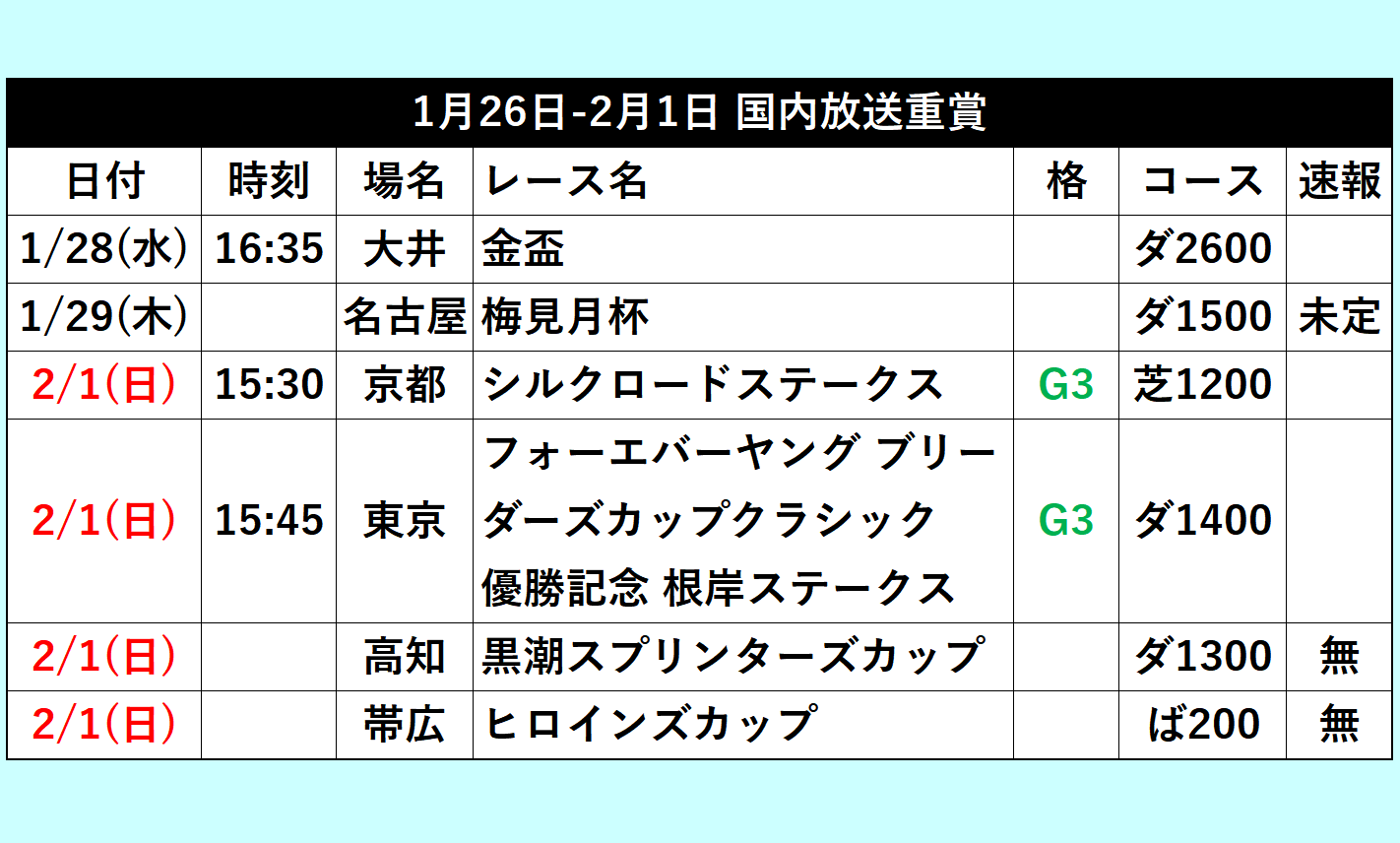 | … | 32126/01/26(月)11:20:32No.1396005657+2月1日(日曜)はフォーエバーヤングブリーダーズカップクラシック優勝記念特別版レーシングプログラムを発行します |