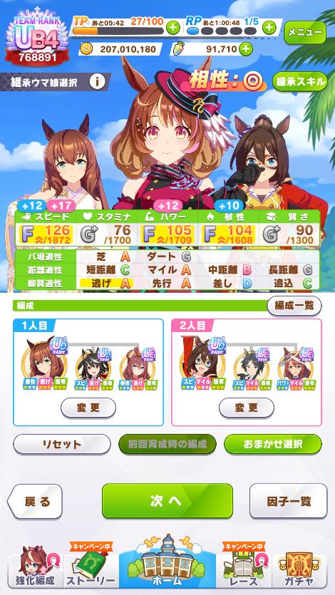 | … | 1226/01/26(月)17:43:28No.1396085513+因子周回に3週間くらいかけて思ったのは因子周回妥協して切れ者の試行回数稼いだ方が強い子できたんじゃねってことなのだ |