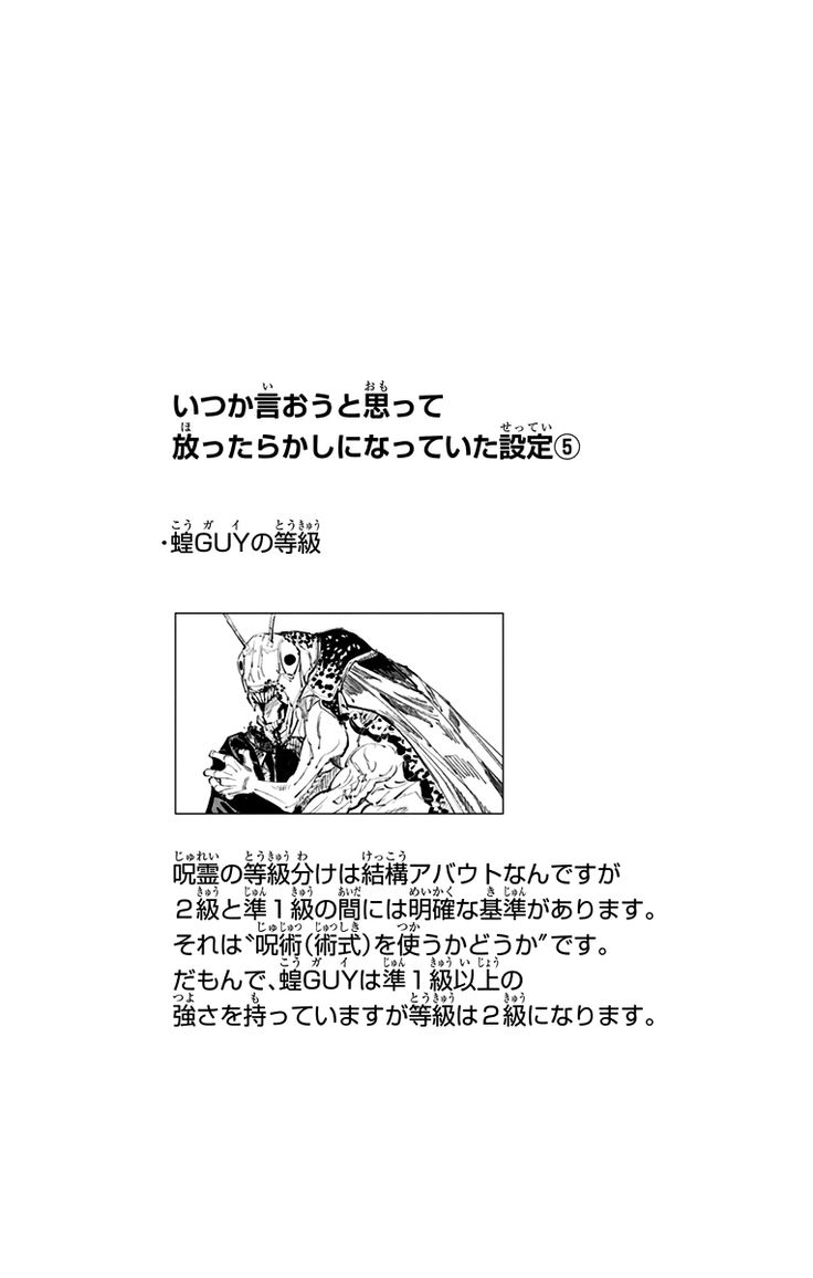 | … | 56826/01/26(月)23:00:16No.1396203018そうだねx4>術式使えるのが一級呪霊だっけ? |