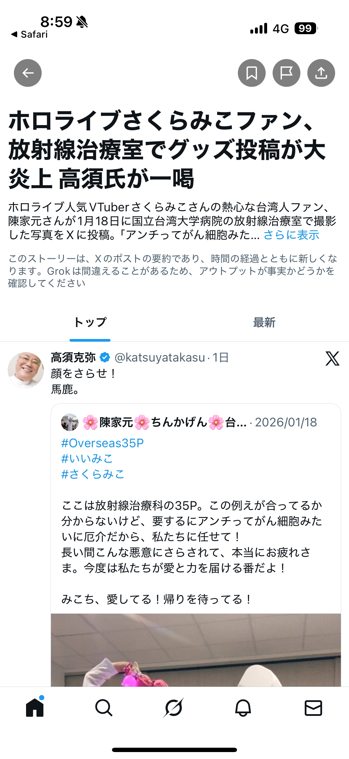 | … | 2026/01/26(月)21:50:00No.1396174038そうだねx3>>高須が手術室で記念撮影してるのと日本の敵を癌に例えた話しなくて大丈夫? |