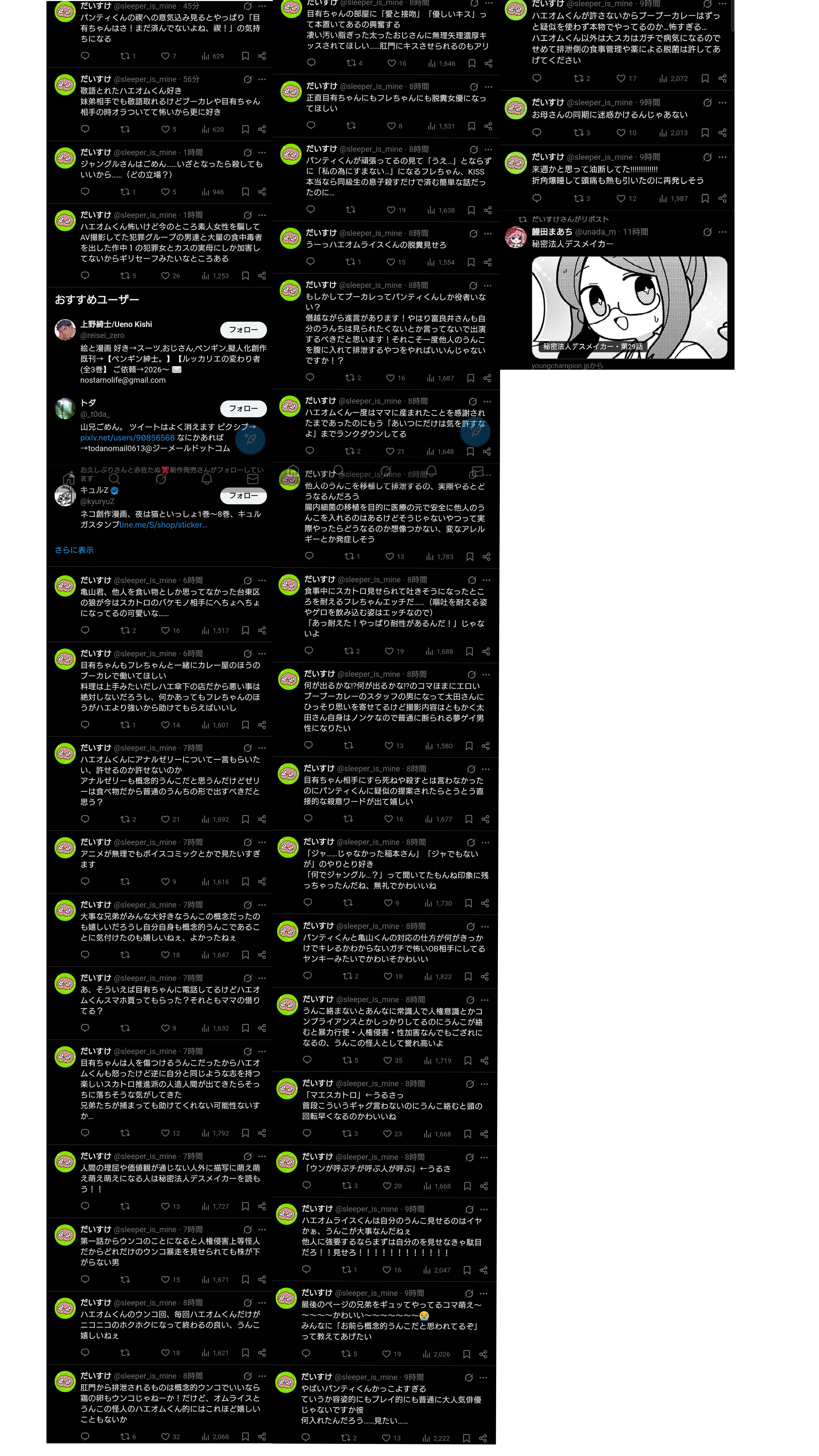 | … | 4026/01/26(月)22:55:44No.1396201368+>立ったまま排泄してるのか |