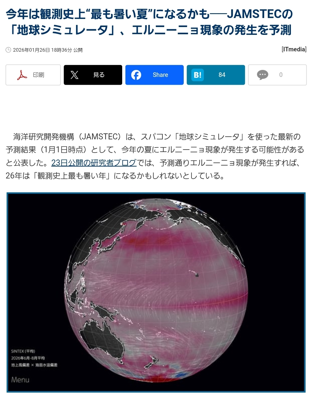 | … | 9026/01/27(火)07:48:40No.1396268039+明らかに日本の周りの海の温度がやばいな… |