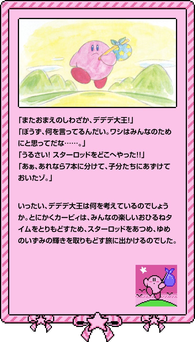 | … | 2826/01/27(火)09:00:19No.1396278149そうだねx1>夢の泉はカービィから遊んでるように見えただけで問い詰められたときにみんなのためを思ってと返してるデデデの反応的に別に遊んでたわけではないんじゃないかな… |