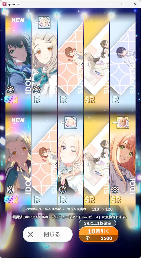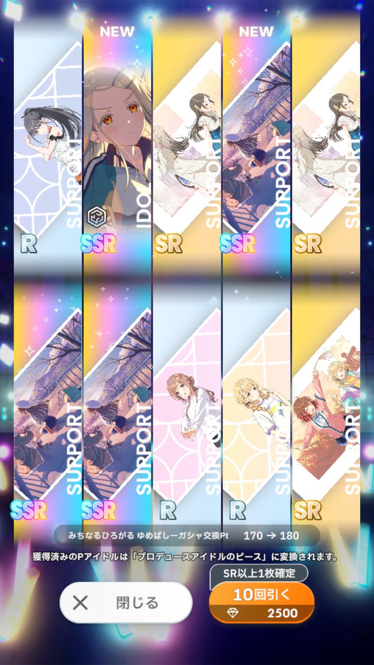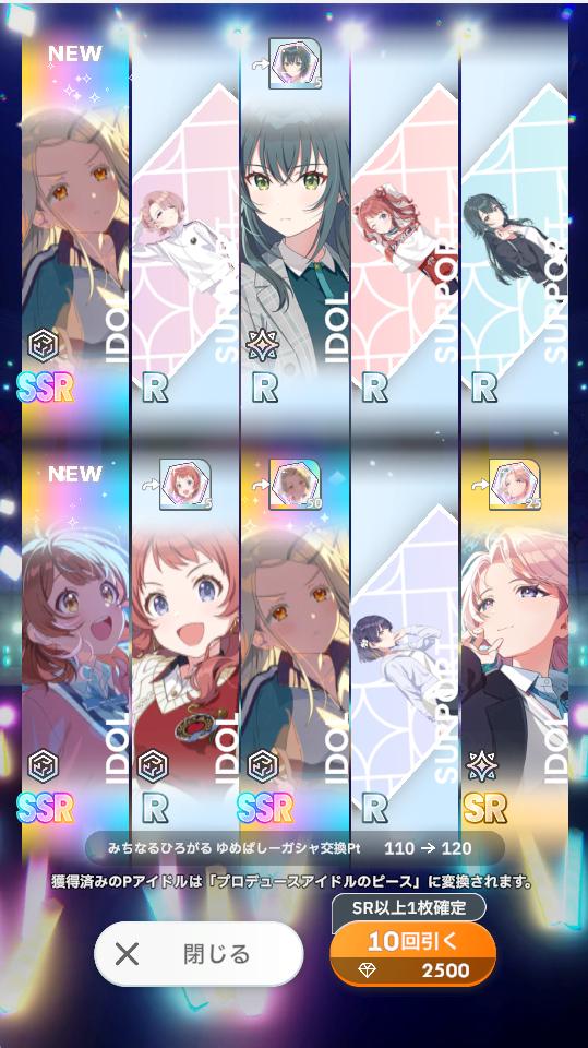 1天井の道中でちなひろどちらかでも引けなかったらわたくし死んでしまいますがSSR2%もあるなら大丈夫ですわね