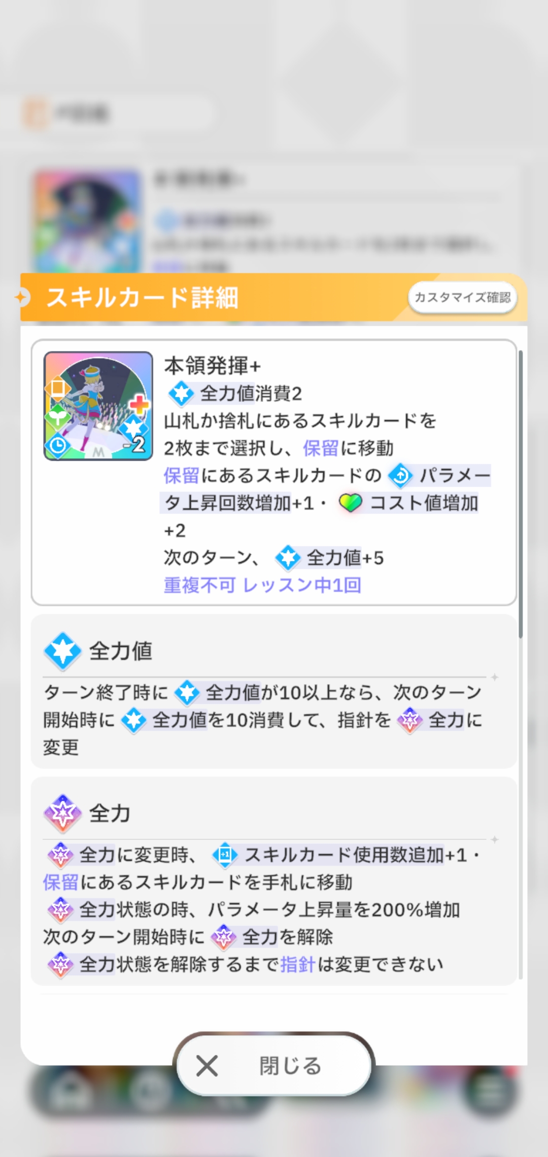 | … | 6526/01/27(火)10:54:33No.1396296462+篠澤さんは体力少ないのに体力消費前提のカードが多いですわ |