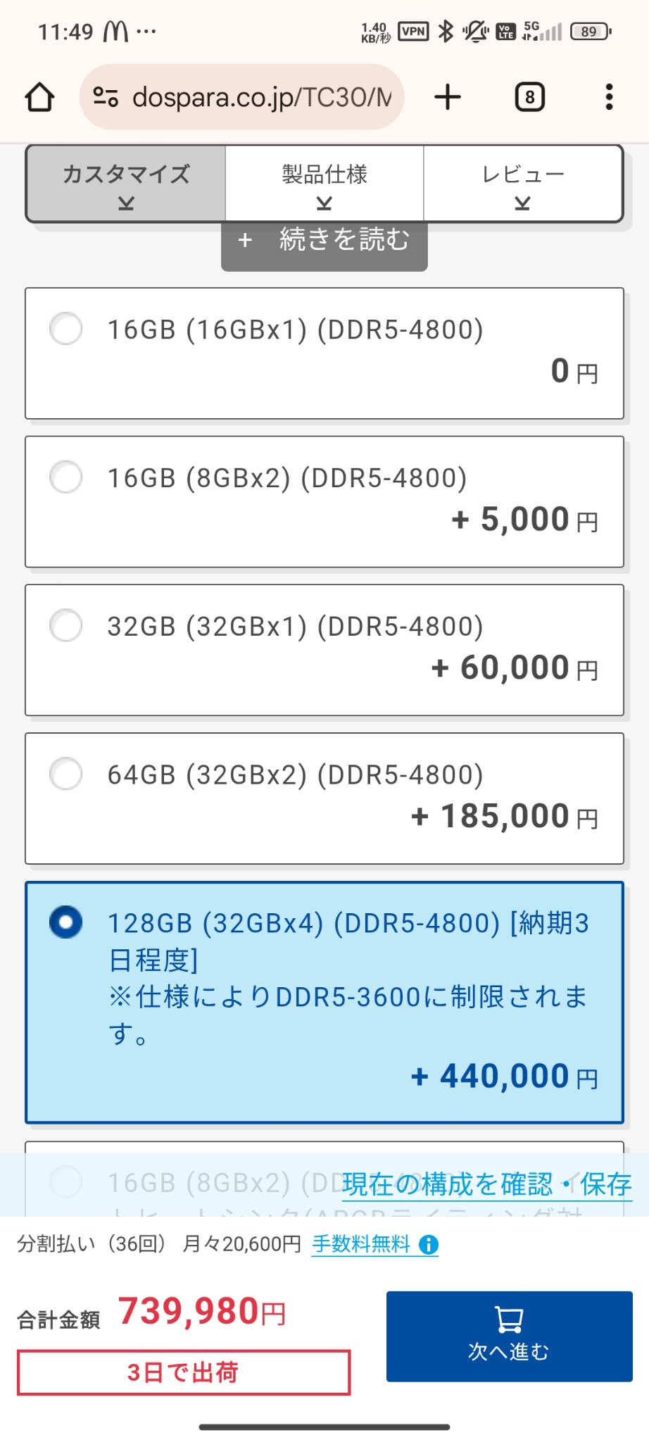 | … | 1026/01/27(火)12:32:24No.1396317476そうだねx2不人気モジュールの48x2の96GBにするだけでマジで値段半分ぐらいになるんだよね怖くない |