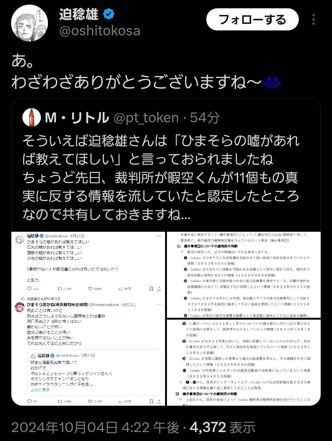 | … | 8526/01/27(火)12:44:19No.1396321058そうだねx144万て… |