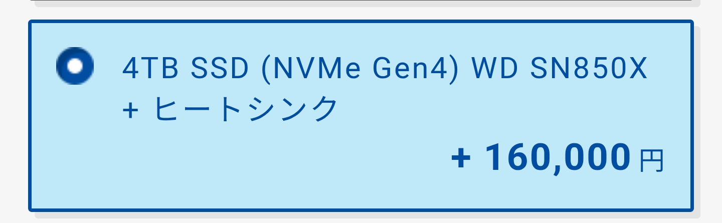 | … | 96026/01/27(火)14:34:20No.1396345641+>カスタマイズの途中からとにかく値段上げてイキろうとしたんだろうけど最初のグラボの選択が低いあたりそこではひよってる |