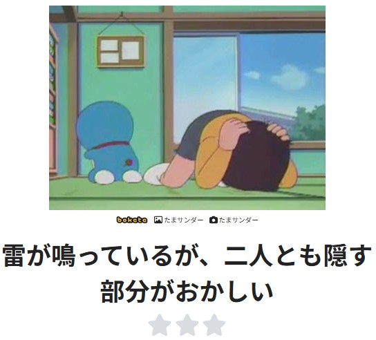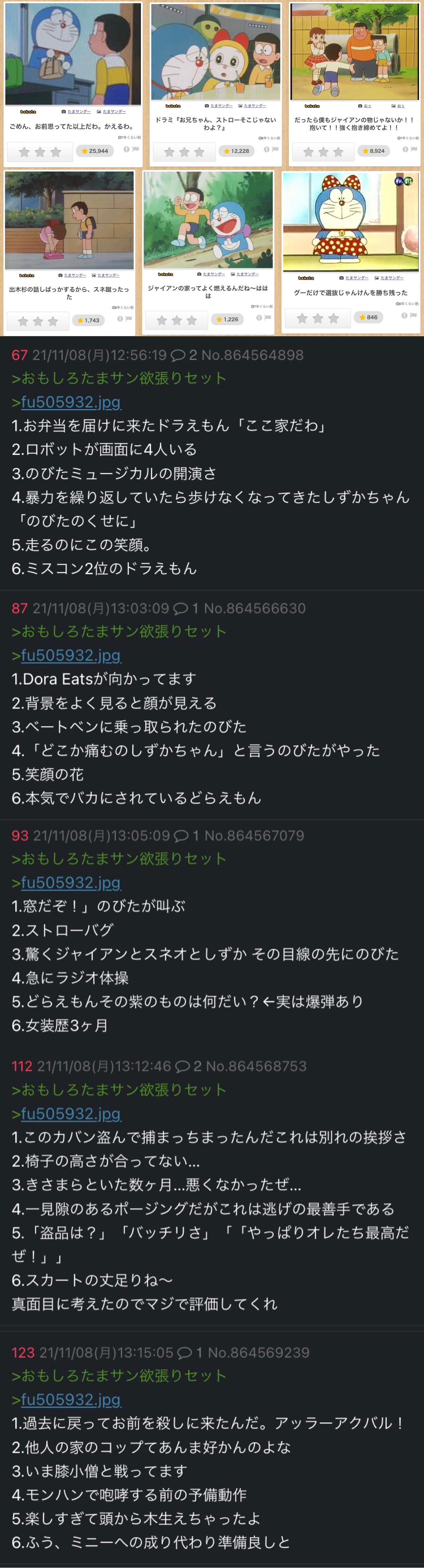 | … | 1626/01/27(火)13:30:55No.1396332291そうだねx28>なんの面白味もないドラえもんのアニメのキャプをひたすらお題として投稿してる奴も何かしらの問題抱えてるだろ |