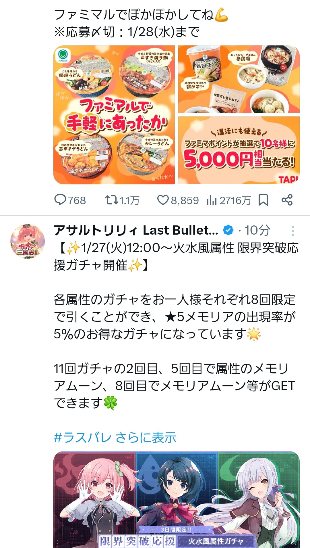 | … | 326/01/27(火)12:11:08No.1396311067+ボックスガチャは回したあと微妙にウェイトが入りますわね… |
