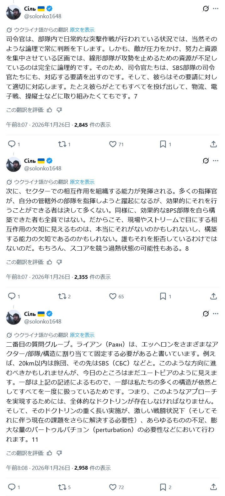 先日ウクライナのドローン部隊が前線の歩兵が本当に倒してくれるもん倒してないって文句が前線から出てるってスレ立てたんだけどこのスレは古いので、もうすぐ消えます。