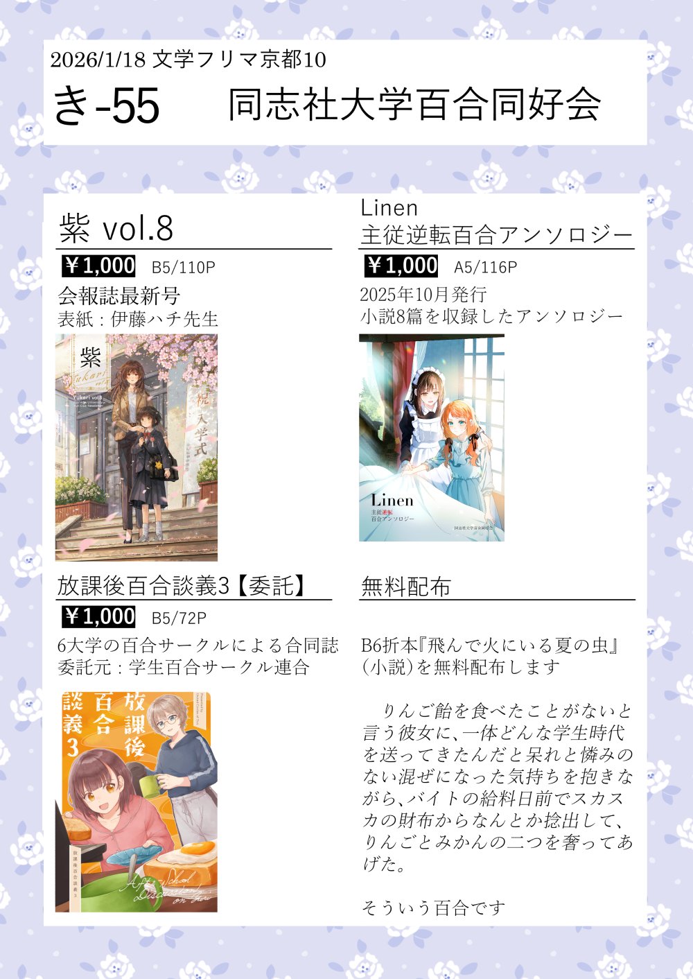 | … | 326/01/27(火)22:35:06No.1396485376+ちなみに何故か分からんが同志社大学でも主従逆転百合アンソロジーは出たのでなんか波がキテル? |