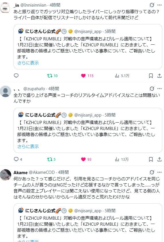 | … | 59926/01/28(水)01:00:11No.1396529334+内輪で各ライバーのリスナー同士が足引っ張りあって勝手にダメージ入ってる状況だから |