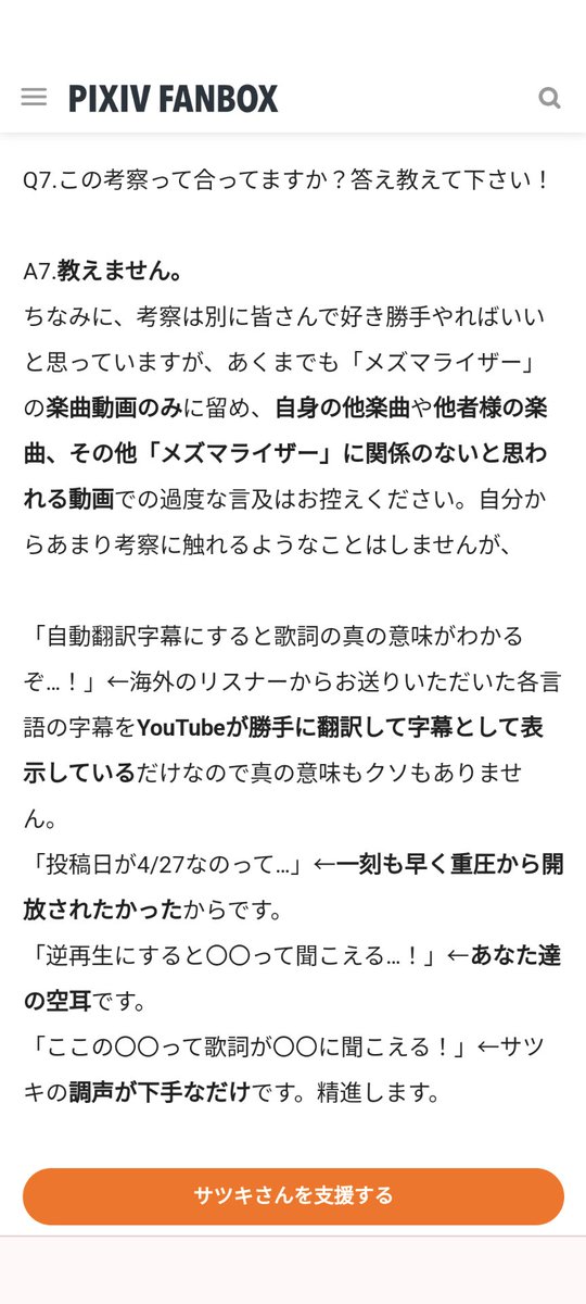 | … | 7326/01/28(水)04:06:29No.1396547289+>ボカロの曲から小説作るって謎の文化が定着してるのが深読み考察界隈特化だなと思ってる |