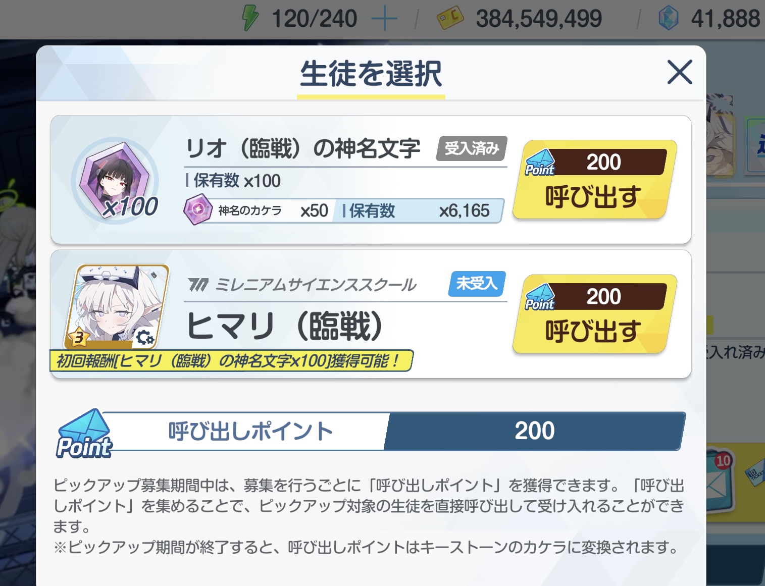 | … | 96426/01/28(水)09:40:51No.1396572242そうだねx2校章出てきて「ミレニ……ッ!背景ミレニアムじゃねーか!!!!!」ってなった リオを諦め…ファーストヒマリ交換です |