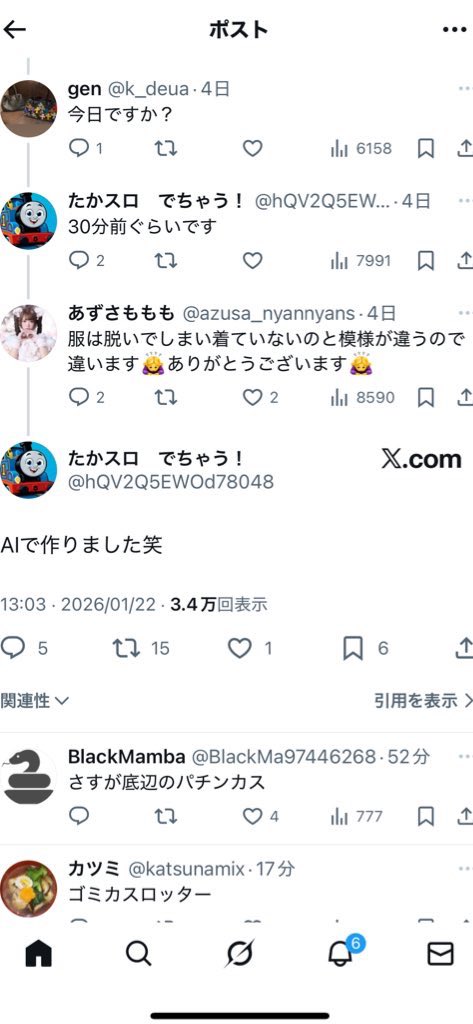 | … | 4626/01/28(水)08:40:03No.1396564417+コイツの垢前覗いたけど案の定grok悪用してたわ… |