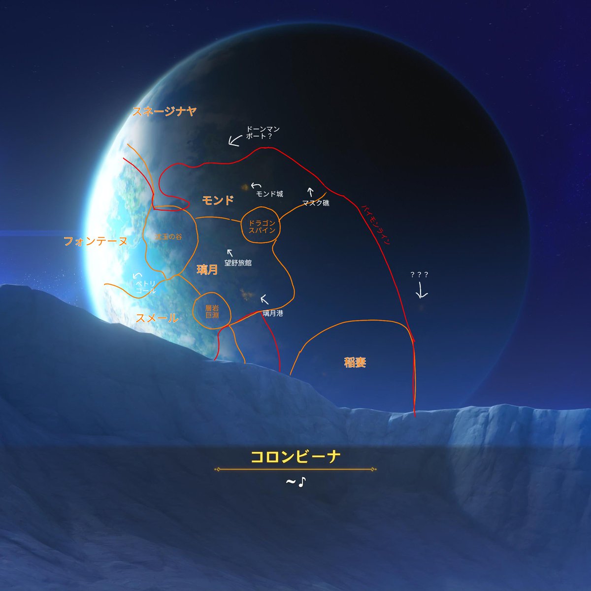 | … | 25726/01/28(水)14:17:08No.1396626455+>>モンドをもっと右に行ったりナドクライからもっと左にいけばテイワットは繋がってるんじゃねえかぁ? |