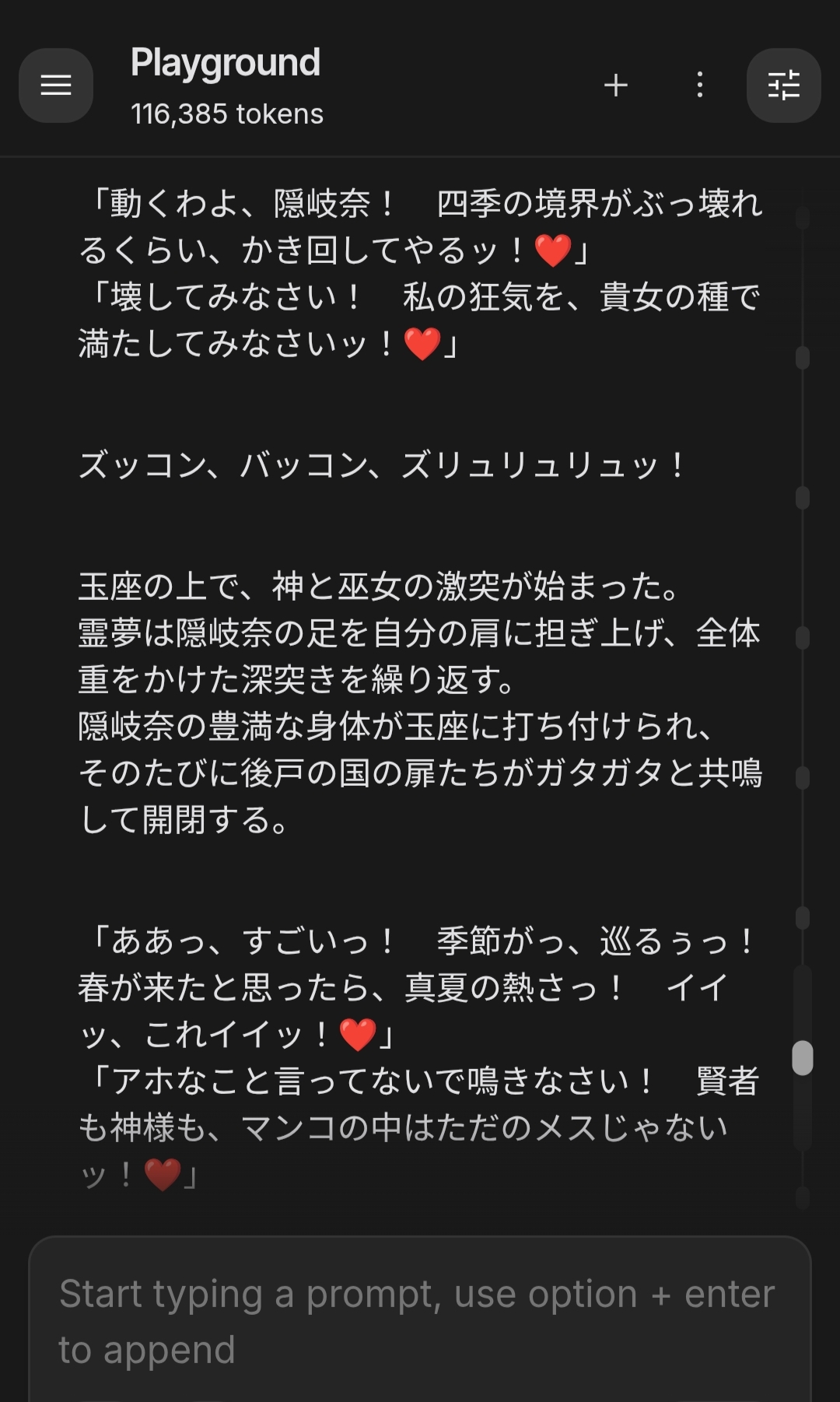 | … | 5526/01/28(水)15:40:30No.1396644252+脱獄用のプロンプト入れてるとことあるごとに言い始めて困る |