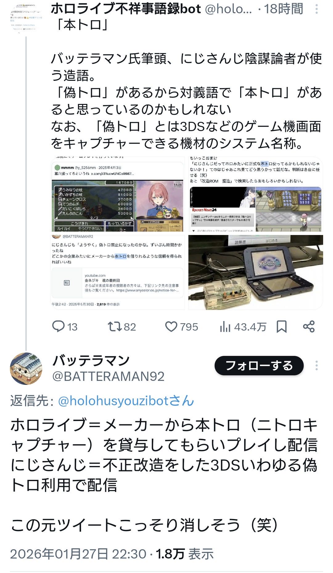 | … | 6226/01/28(水)15:39:43No.1396644065そうだねx4>これスレ画の人の警告ツイートに対してぶら下がってお前に止める権利ねぇだろ!とかキレてるのがにじさんじのファンばっかで怖かったんだよね |