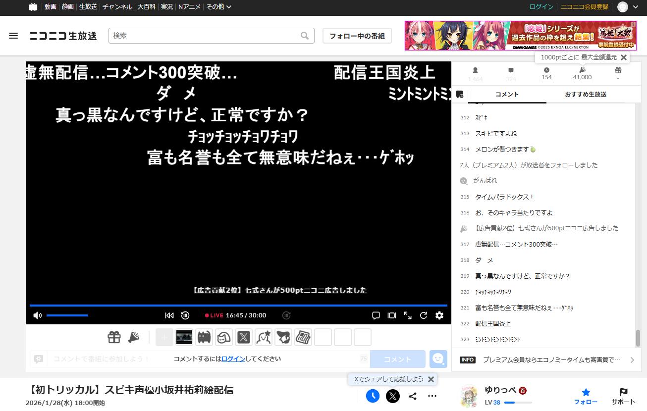 | … | 61626/01/28(水)18:44:22 ID:QvOH3b1MNo.1396687369+>こういうのって案件じゃなくて個人配信なのにゃん? |