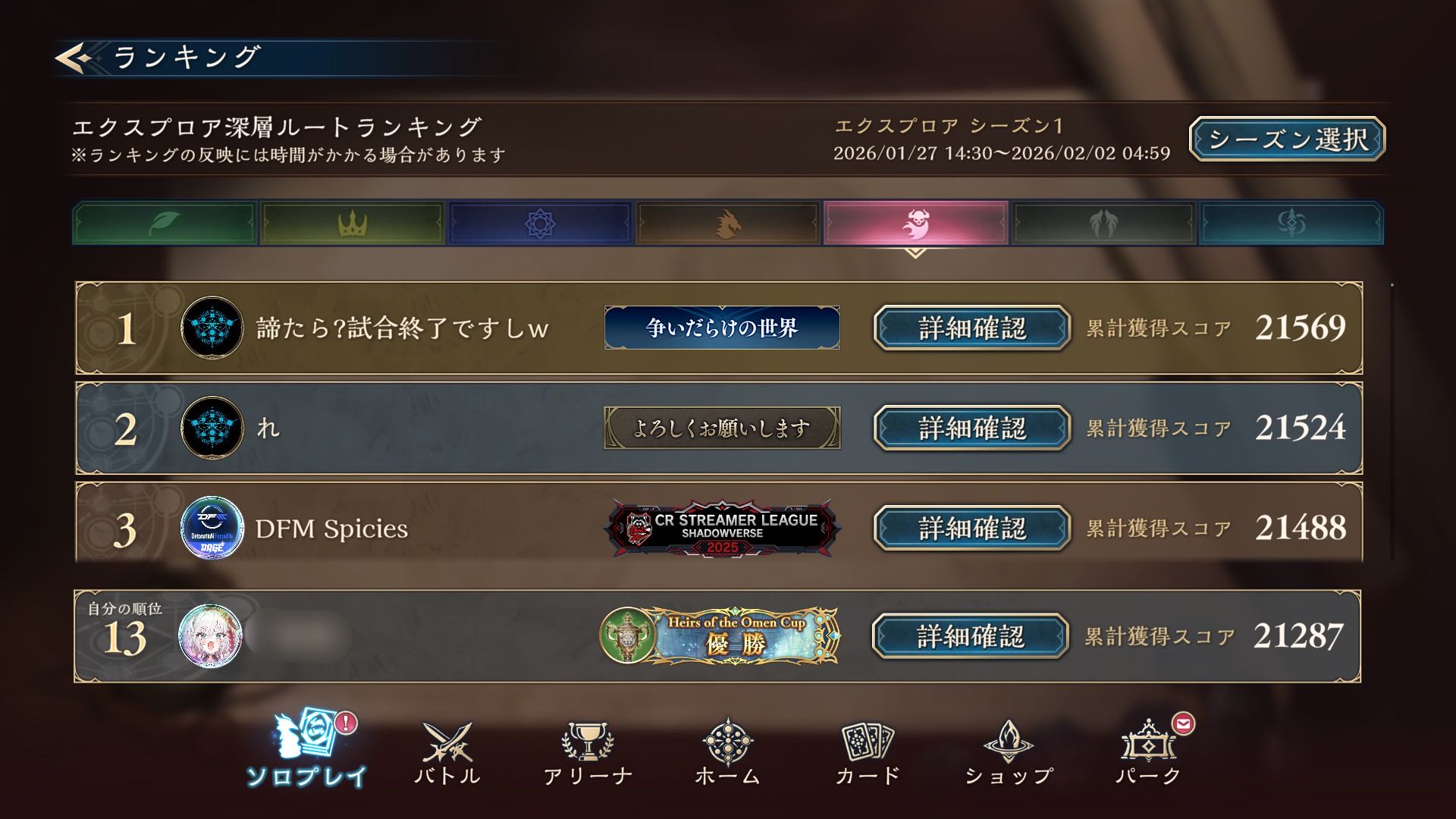 | … | 726/01/28(水)17:43:01No.1396670550+ランキングでピカピカデッキアピールできるのいいルナね |