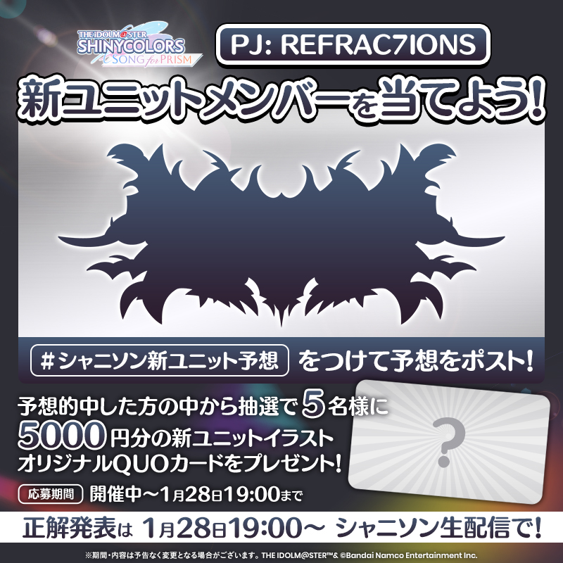 | … | 526/01/28(水)18:59:07No.1396692004そうだねx2https://shinycolors.lantis.jp/extra/260128_1/ |