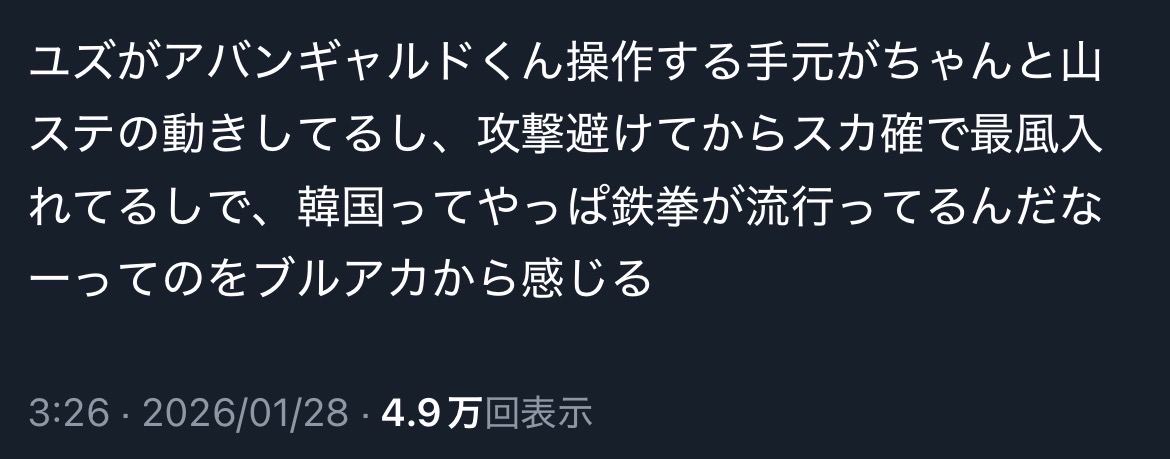 | … | 98926/01/28(水)20:50:11No.1396736889そうだねx1>正直なところブルアカ全部適当にやってて育成も全然不十分な状態で使ってるから |
