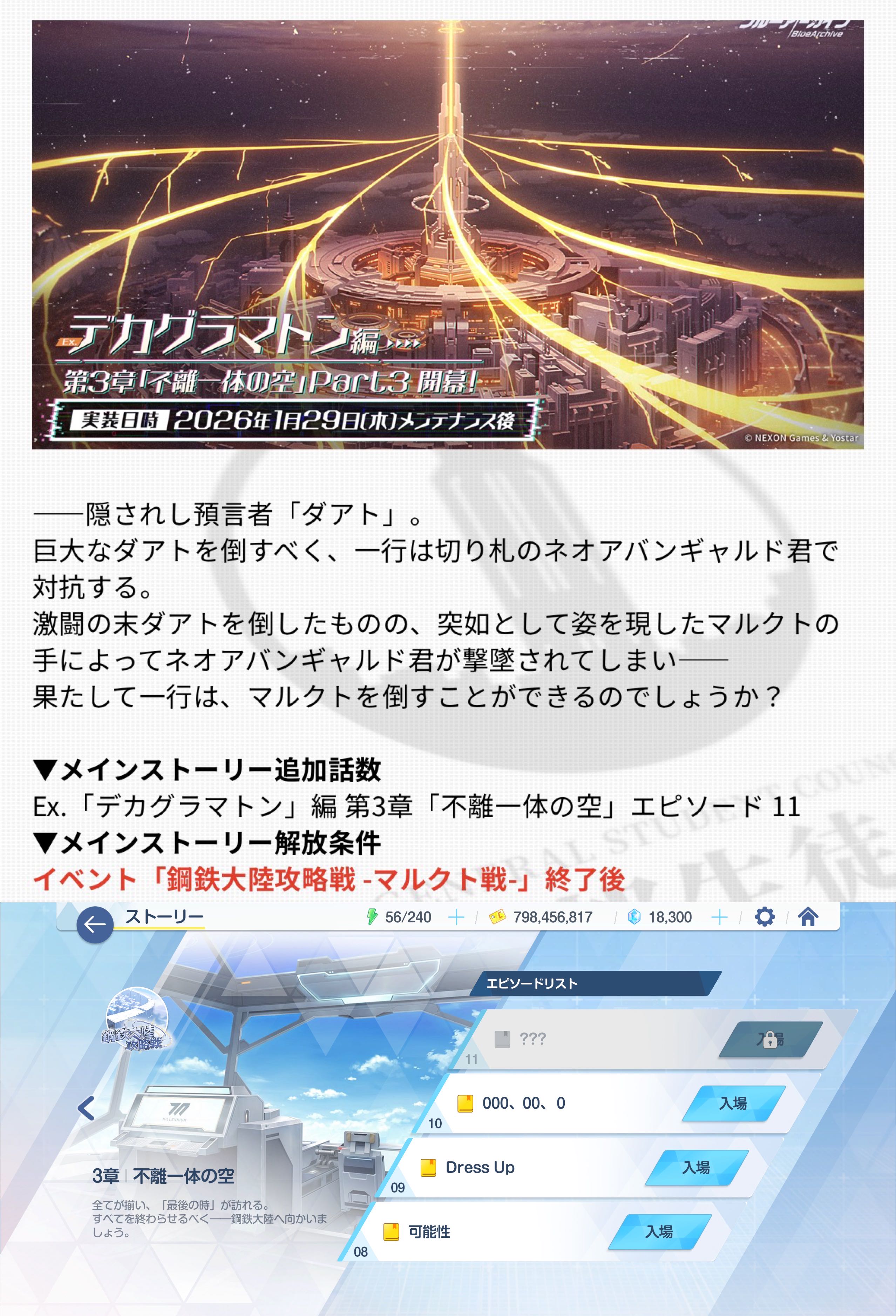 | … | 99826/01/29(木)11:36:03No.1396885282+>一応聞くけど >もうこの鋼鉄大陸の復刻はないんだっけ…? 復刻はない いきなりメインストーリー内常設になる |